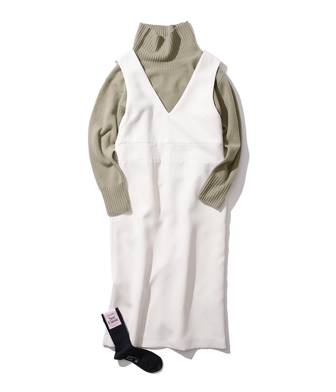 白が主役の楽ちんコーデ。インナーを変えてオールシーズン使える万能ワンピ。