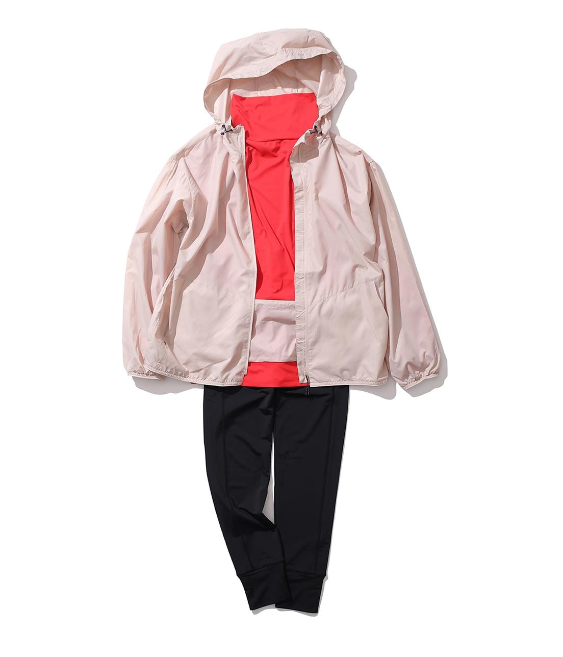 ランニング・ウォーキング中の温度調節も楽らく。鮮やかな赤が目を引くユーティリティスタイル。