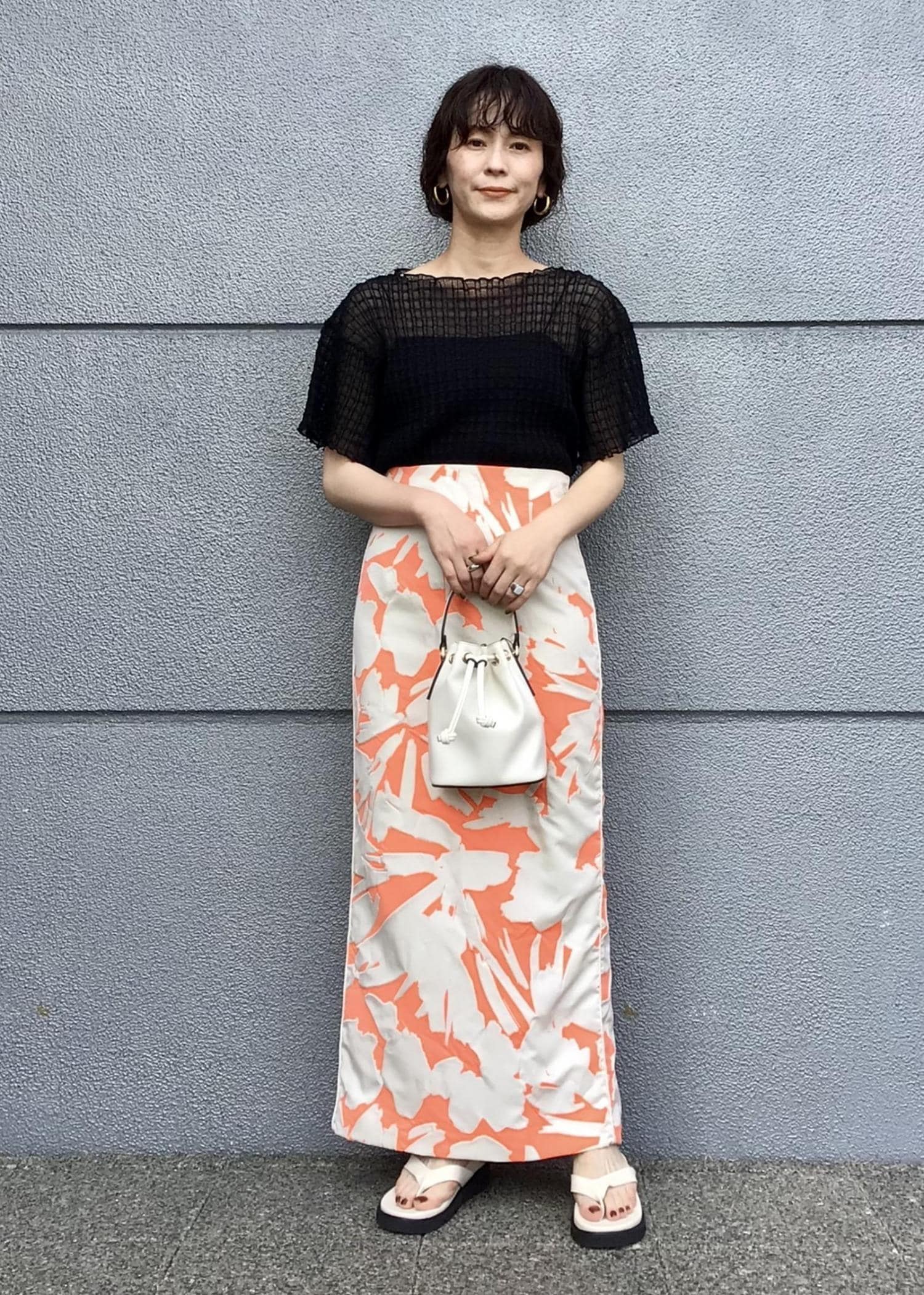 華やかなプリントが大人っぽい都会的なスカートコーデ