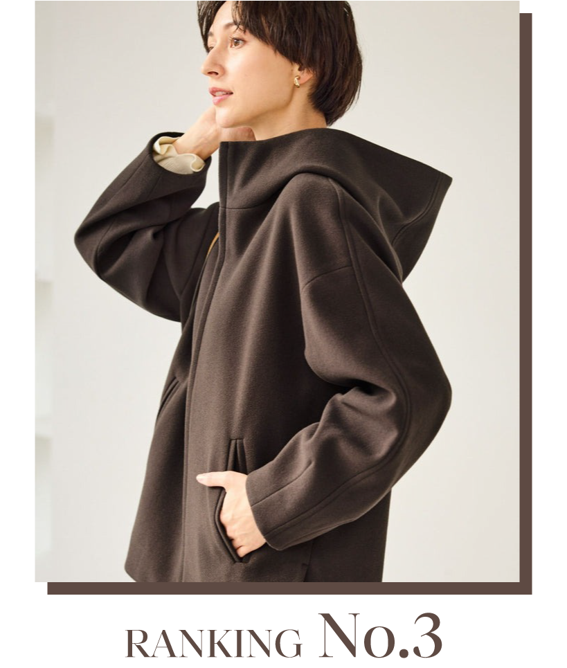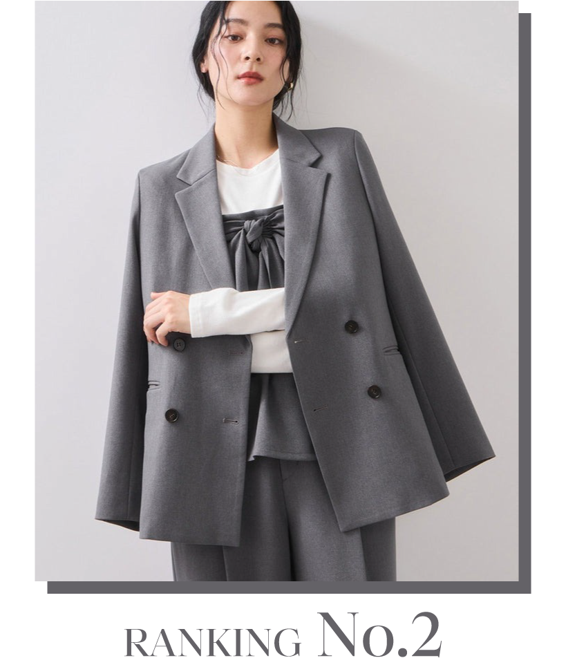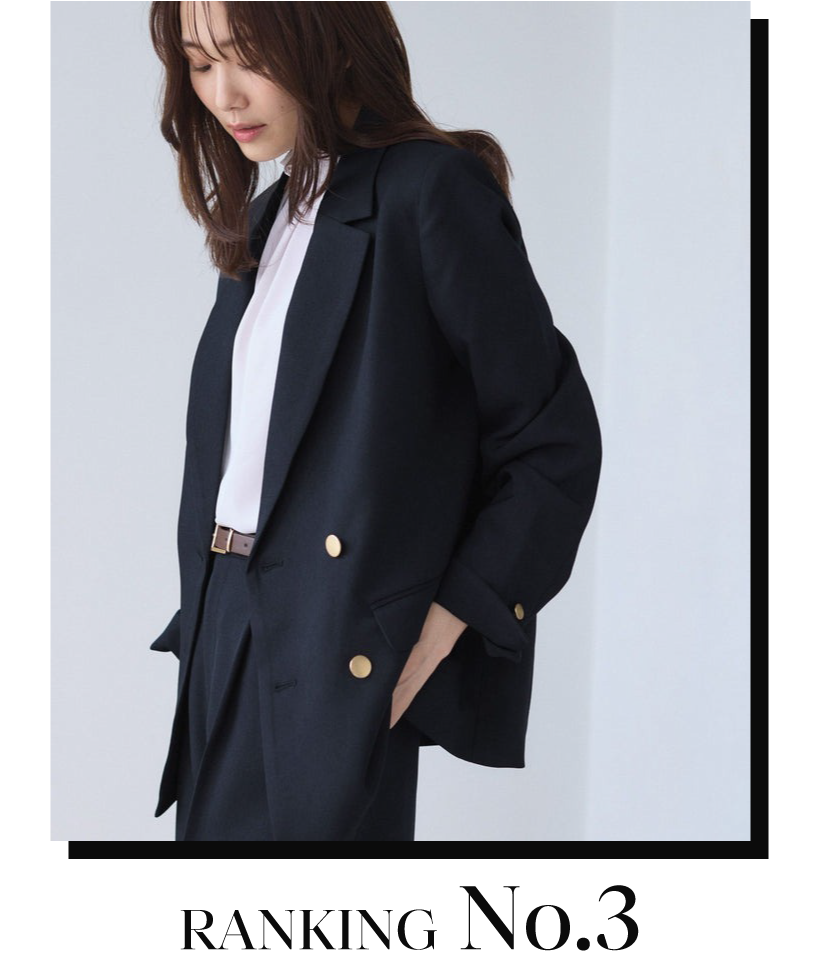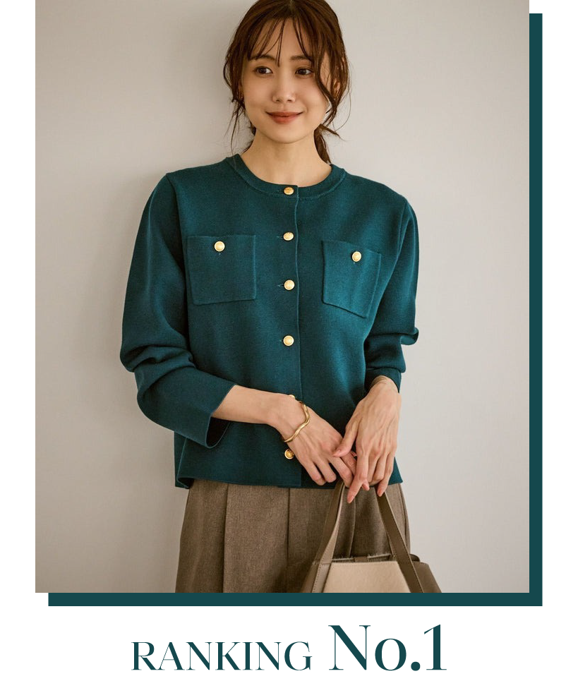 1位にランクインしたジャケットのミドル丈バージョンです。お尻が隠れる着丈のため、アウター感覚で着用できます。高身長の方や、長めの丈で着こなしたい方におすすめ。