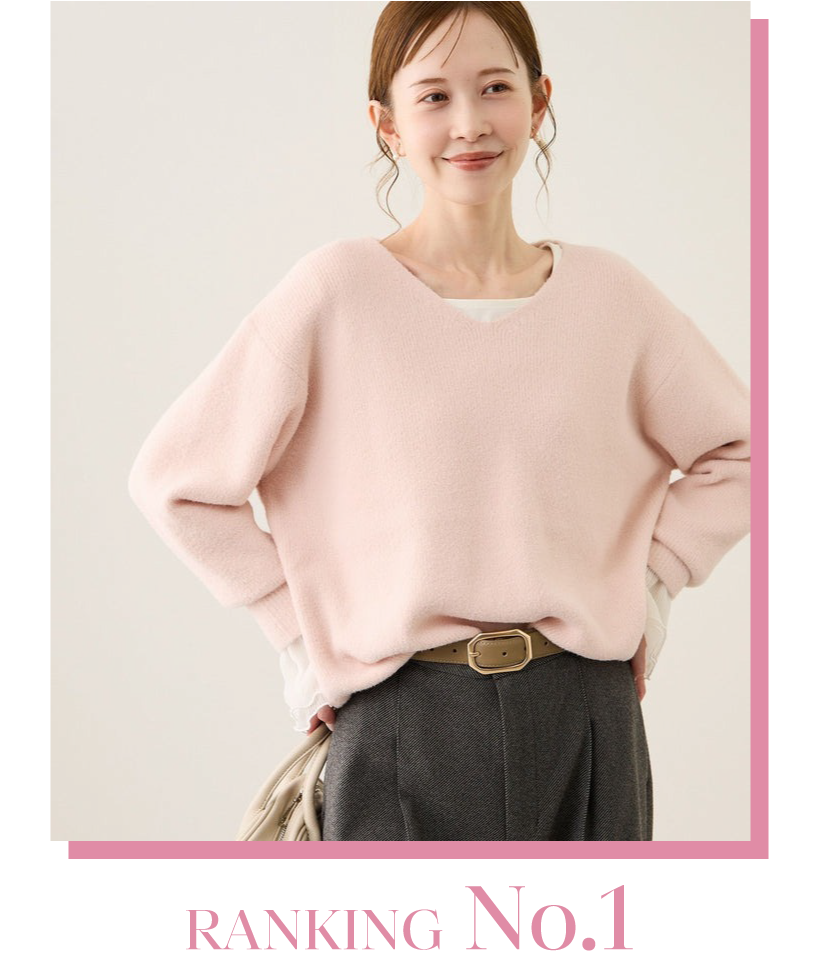 もっちり&ふんわりとした優しい肌触りが魅力の、デコルテをすっきり見せるシンプルなVネックニット。肌あたりが良く、チクチクしにくい素材です。ゆるすぎず、程よく体から離れるシルエットです。