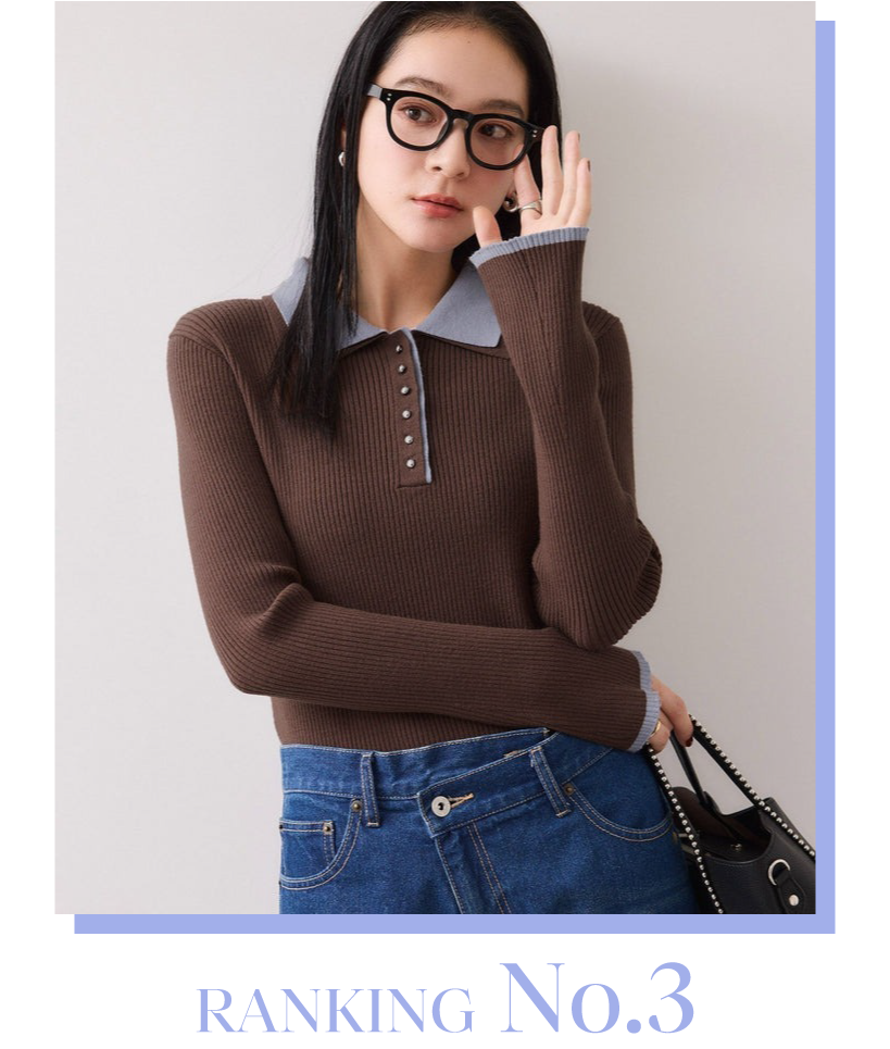 トレンドのダブルカラーデザインを取り入れたポロニットは、リブ編みで身体のラインをキレイに見せてくれます。ボタンをとめるとクラシカルな印象に。キレイめなスラックスはもちろん、デニムなどカジュアルなアイテムとの相性もぴったり◎。