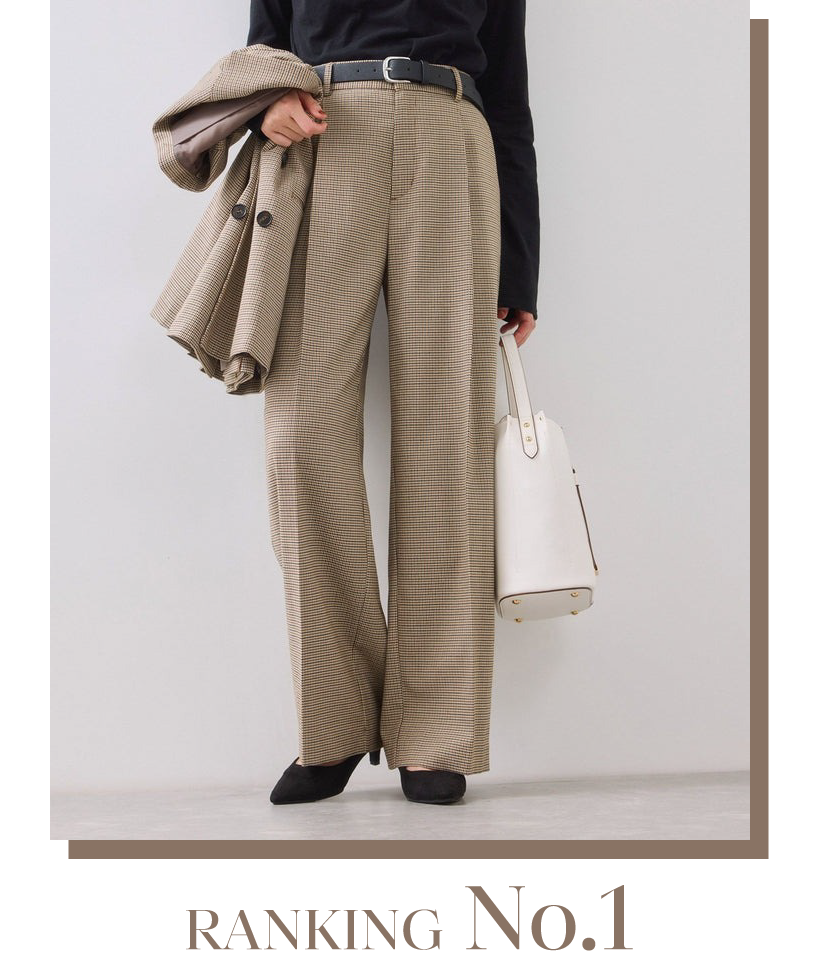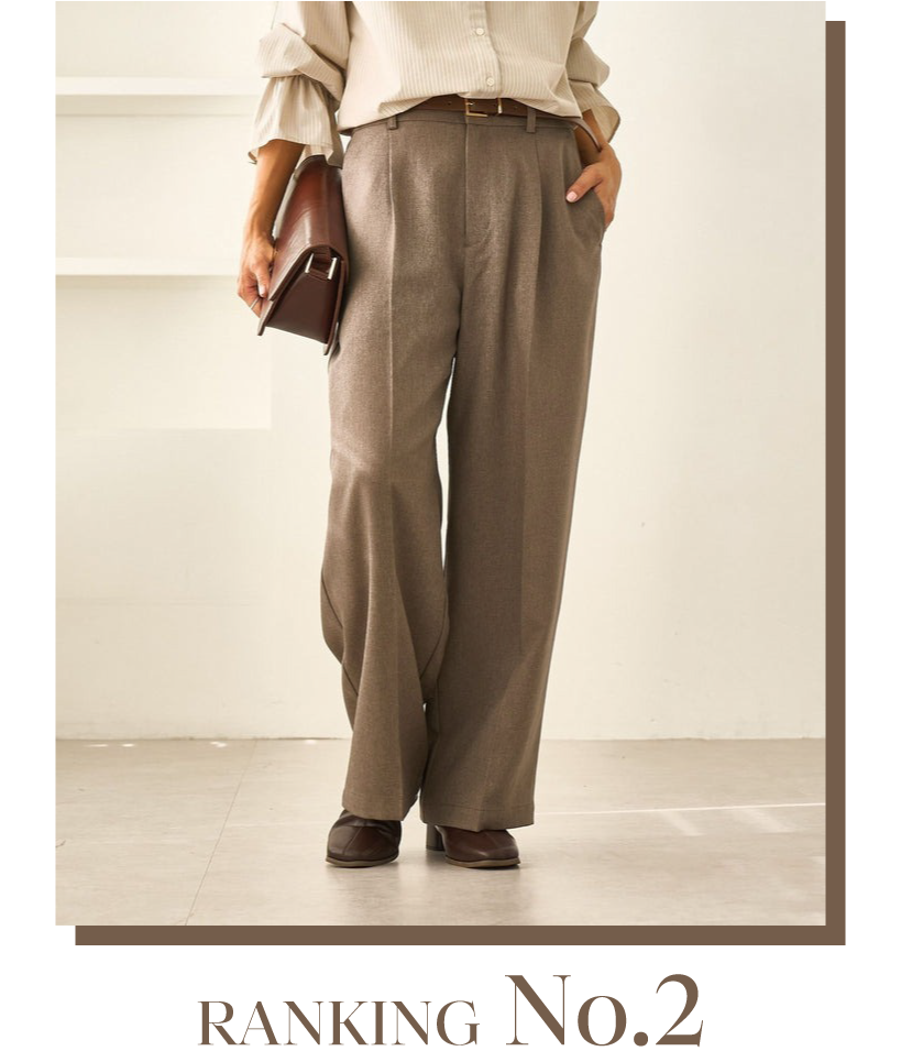 センタープレス入りで脚のラインをキレイに見せてくれるワイドパンツ。後ろウエストはギャザー使いでラクチンな履き心地◎。両脇ウエストの内側にアジャスターが付いているため、ウエストのサイズ調節が可能です。