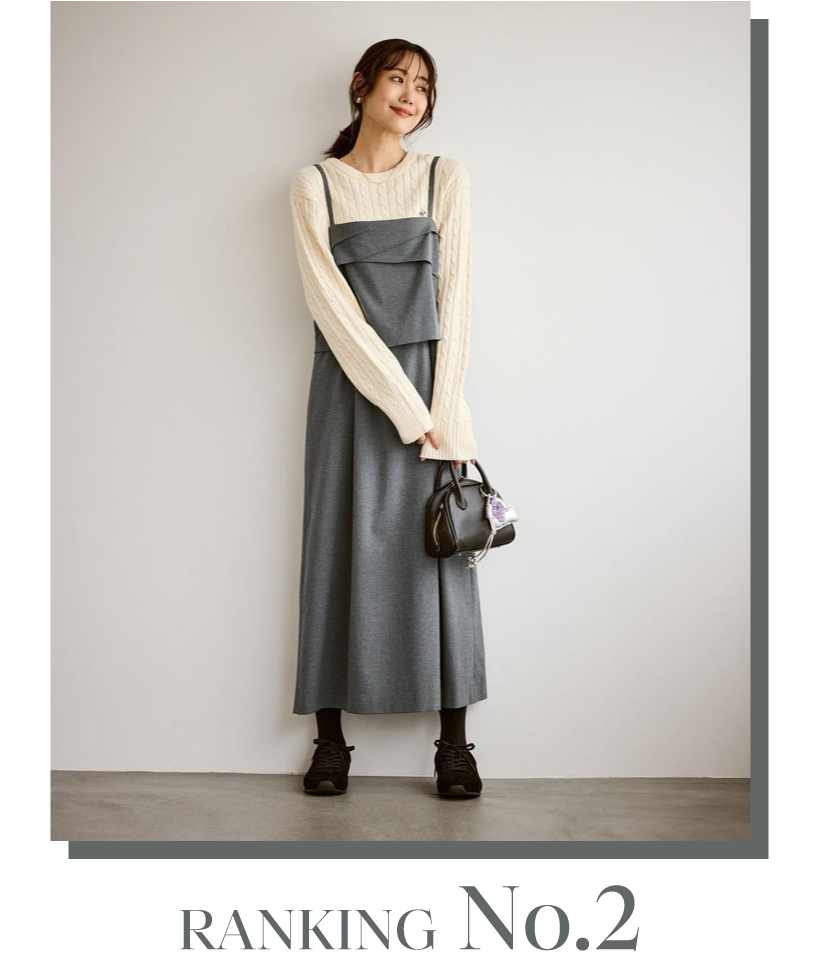 一枚でレイヤードしたように見える、すっきりシルエットのワンピース。胸元のドレープが、ジャケットやカーディガンを合わせた際のスタイリングのアクセントに◎。ウエスト部分の切り替えが表に見えないデザインのため、一枚でレイヤード見えが叶います。