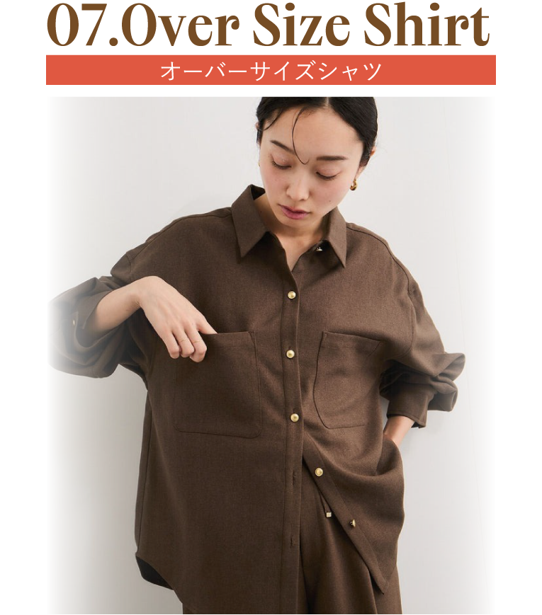 シャツは大きめサイズをゆるっと着るのがオススメ。ボタンを留めて1枚でも、羽織ってラフに着ても、こなれたスタイリングに仕上がります。