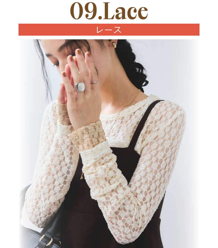 ジレやジャケットの下にちらりと覗かせれば、上品なレイヤードスタイルに。1枚で着映えする主役トップスとしても◎。今季注目のトレンドアイテムです。