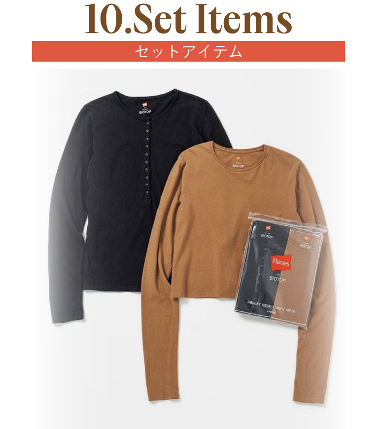 タンクトップとカーディガン、ヘンリーネックとクルーネックなど、2アイテムで楽しめるセットアイテムが豊富。その日の気分で自由なレイヤードを楽しんでください。