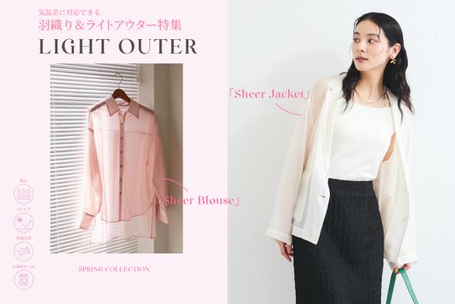 軽やかで抜け感のあるシアー素材は、今の時期から長く活躍する便利なアイテム。アイボリーやグレージュ、くすみカラーなどのニュアンス系カラーなら、肌なじみが良くスタイリングにも取り入れやすい。