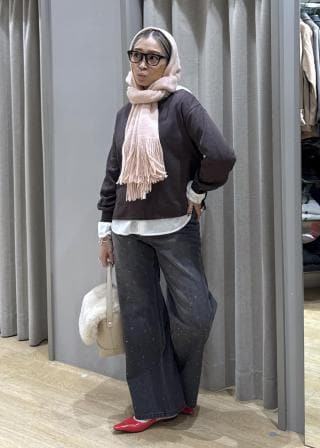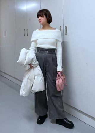 やわらかな質感をもっているので、身につけるものもやわらかな質感、装飾のあるデザインをセレクトしてみて。また寂しい印象にならないよう、足し算スタイルも必須。冬はストールやマフラー、アクセサリーをうまく活用して、華やかさを心がけてみると素敵です。