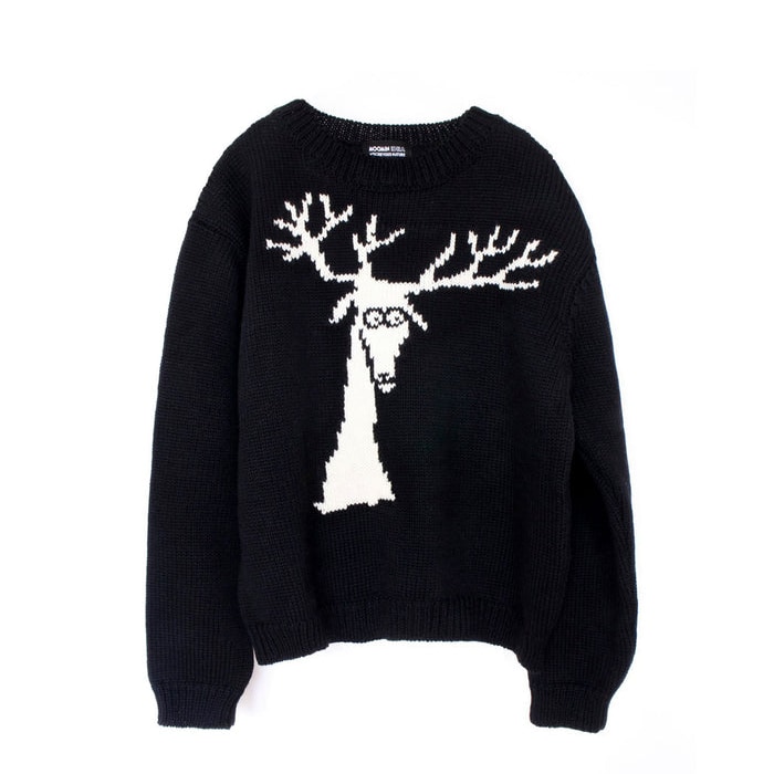 大人の遊び心をくすぐるこちらのニットは、英国産ウール100%。ムーミンシリーズに登場するトナカイのアートワークをジャカードで表現しました。