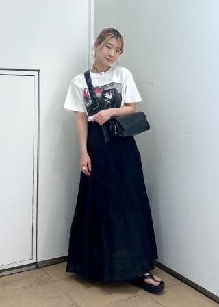 プリントの存在感があって、華やかな印象にしてくれるTシャツです!生地感がしっかりしているので、透けすぎないのも嬉しいです☺︎丈感が長めなので、インスタイルもボトムスから出したスタイルも楽しめます♪