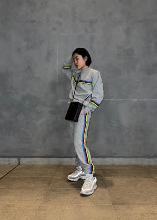 少し立ち上がったモックネックが90年代の香りを演出し、カラーのラインディテールがモダンなエッジを加えている。 リラックスフィットなので、おうち時間にもぴったり、お洒落に着こなせるインナーウェア・アウターウェアどちらとしても活用できます。程よい伸び感でリラックスフィット。これ1枚で抜群にお洒落がきまっちゃう万能トップスです。ラインの配色が2パターンあり、5色のマイヨアルカンシエルカラーかトリコロール。スウェット自体はベーシックなグレーとネイビー、チャエンジしたいイエローとブルーのラインナップです。セットで着れるスウェットパンツをコーディネートするとより一層90Sのお洒落カルチャーを身に纏えます。フレアパンツ、デニム、スラックス、ミニスカート等シンプルなボトムスをオススメします。