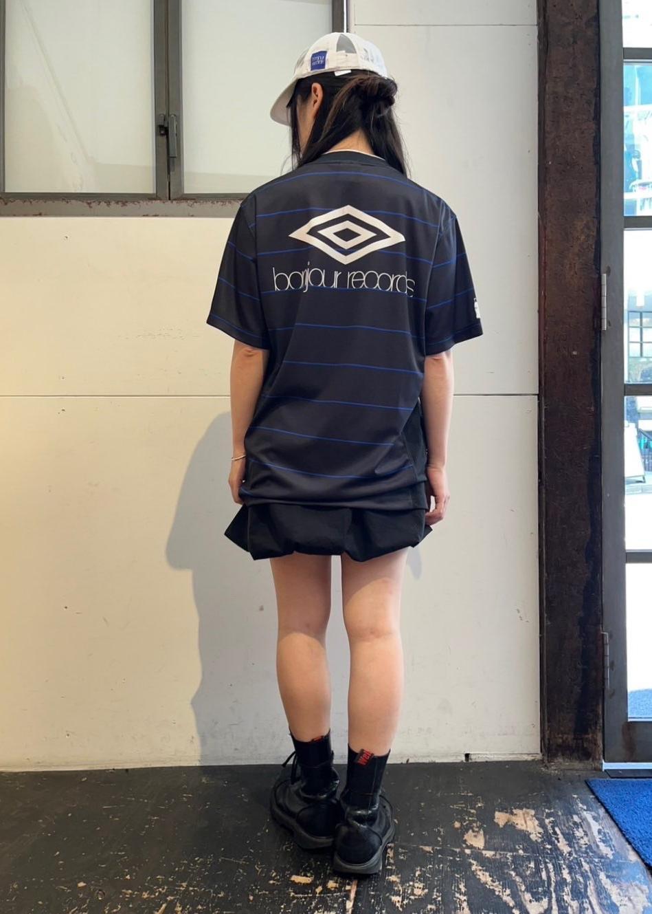UMBROとbonjour recordsによるストライプサッカージャージとナイロンサイクリングキャップを選びました。