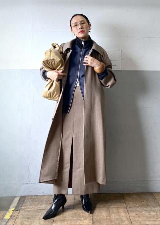 メンズライクな雰囲気に、パターンでフォルムを表現した袖で柔らかな印象を加えたロングコート。