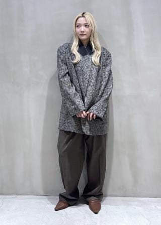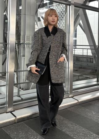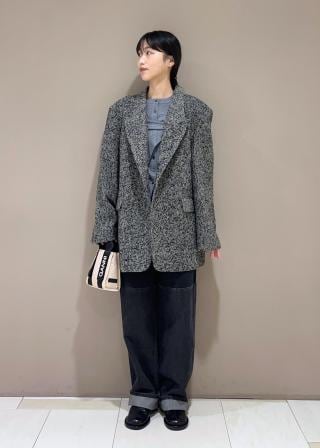 | 素材 | (表地)ウール 47% アクリル 18% モヘヤ 14% ナイロン 11% ポリエステル 8% その他 2%(裏地)キュプラ 100%(襟部分)毛 90% ナイロン 10% |