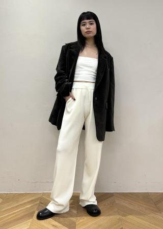 肩やバストはゆったりと、裾は少しタイトなシルエットに仕立ててシンプルなようでモード感漂うバランスのシングルジャケット。