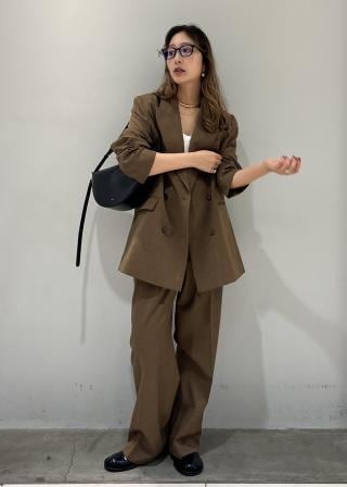 スラックスはシルエットと分量感にこだわり、足をすっきりと見せながら、ヒップ周りはカバーしてくれるデザイン。