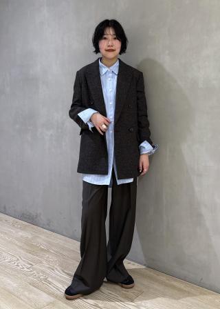 ボリュームのあるニットトップスや、オーバーサイズのジャケットなども合わせやすいスラックス。