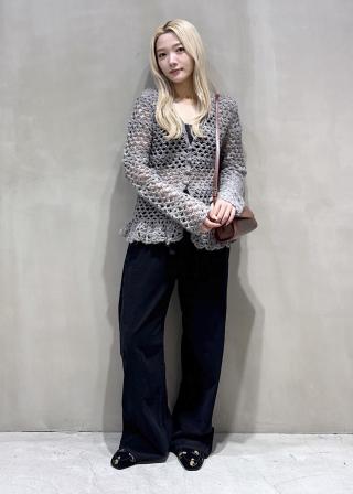 粗い編み目から透ける適度な肌見せが、上品な抜け感を演出。