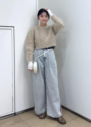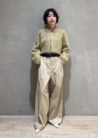 スタイリングの主役となる存在感のあるモヘアファーのボレロカーディガン。