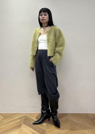 スタイリングの主役となる存在感のあるモヘアファーのボレロカーディガン。