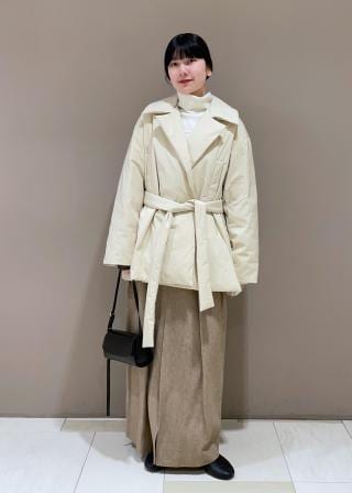 襟はくしゅっとさせた着こなしがおすすめで、 袖カフスはシャツディティールを取り入れたデザイン。