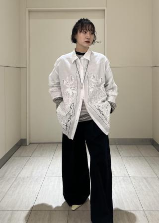 メンズライクなサイズ感のシャツをベースに、こだわりのエンブロイダリーを贅沢に施しマニッシュとフェミニンのバランスが絶妙な1着。