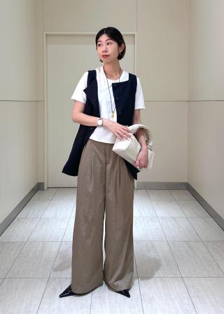 ワイドストレートのスラックスやイージーパンツと合わせて、マニッシュな合わせも是非。