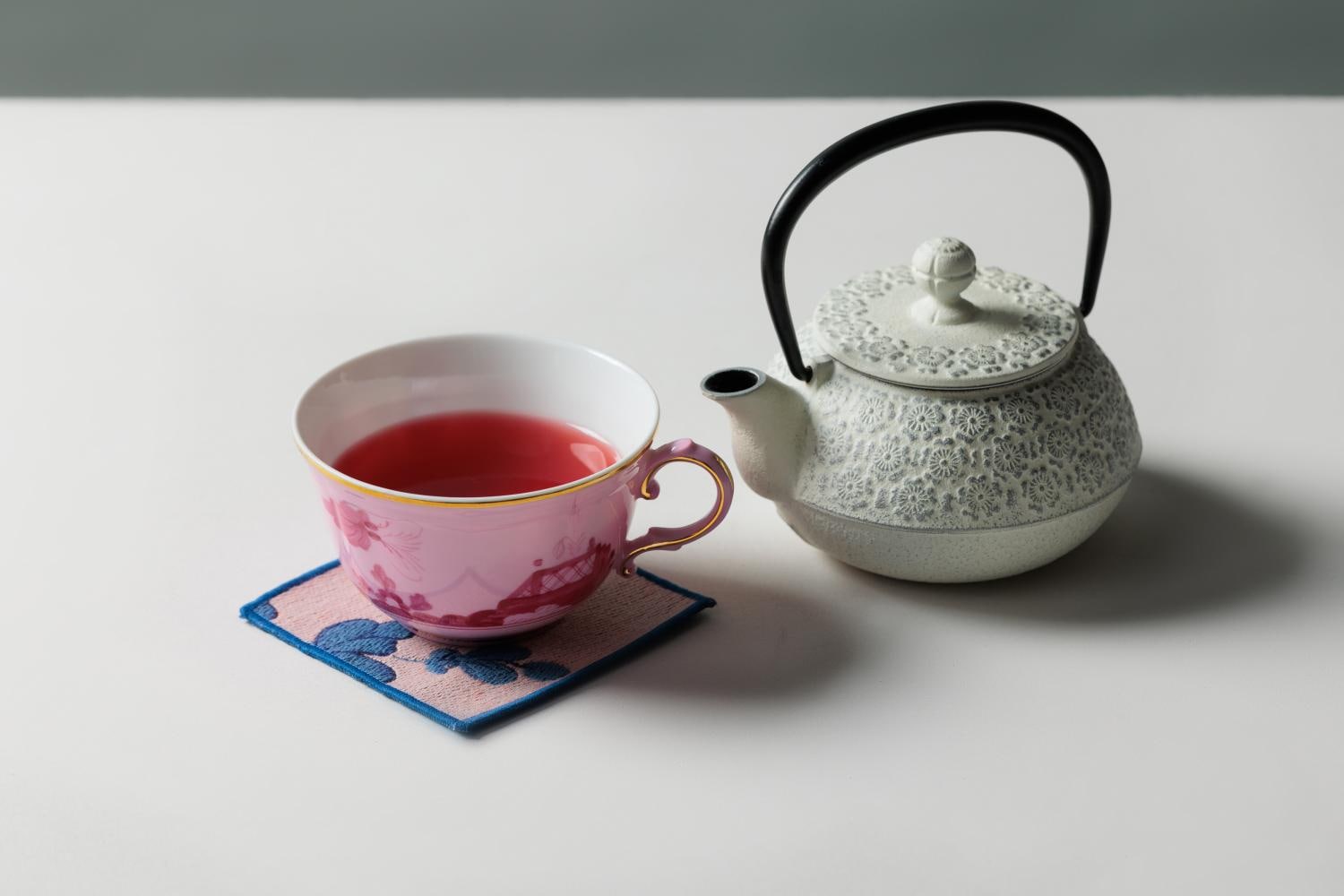 リニューアルオープン記念に、アフタヌーンティまたはスイーツビュッフェをご利用のお客様へ、内装の端材を活用した「GINORI 1735」柄のオリジナルコースターをプレゼントいたします。(無くなり次第終了)