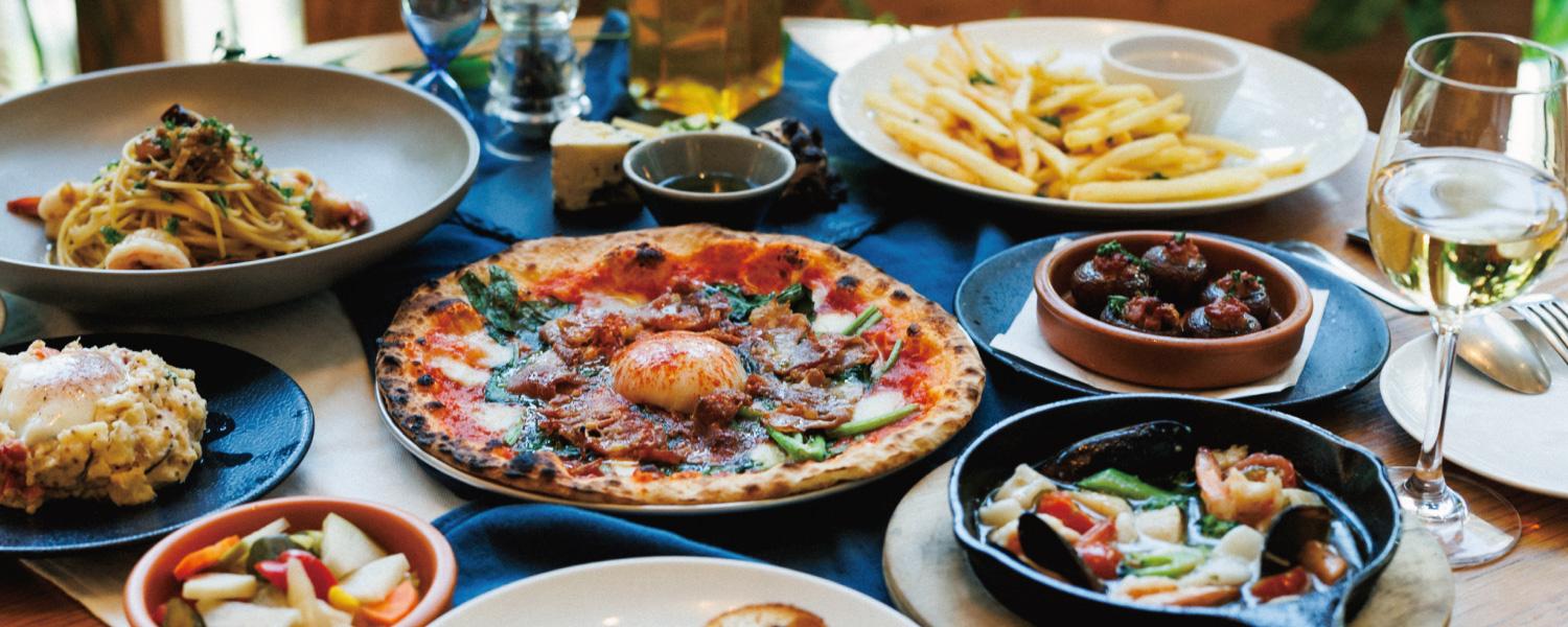 リゾート気分でリラックス&リフレッシュ、窯焼きピザや地中海をイメージした季節のタパス、旬のフルーツを使用したデザート、日本ワインを楽しみながら自分らしく過ごせる時間をサントロペから。