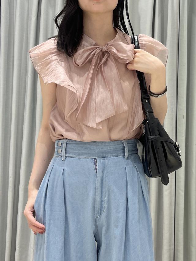 【店頭人気】主役級!華やぎシアーシャイニーボウタイフリルブラウス【前後2WAY】【洗える】