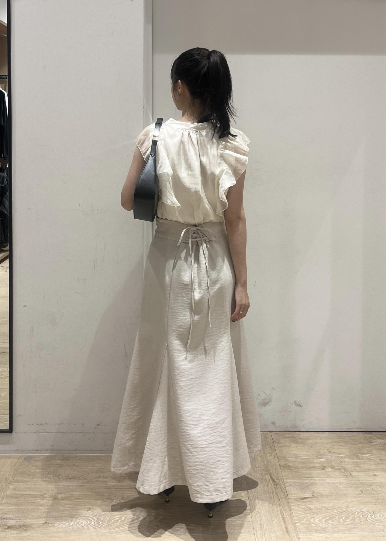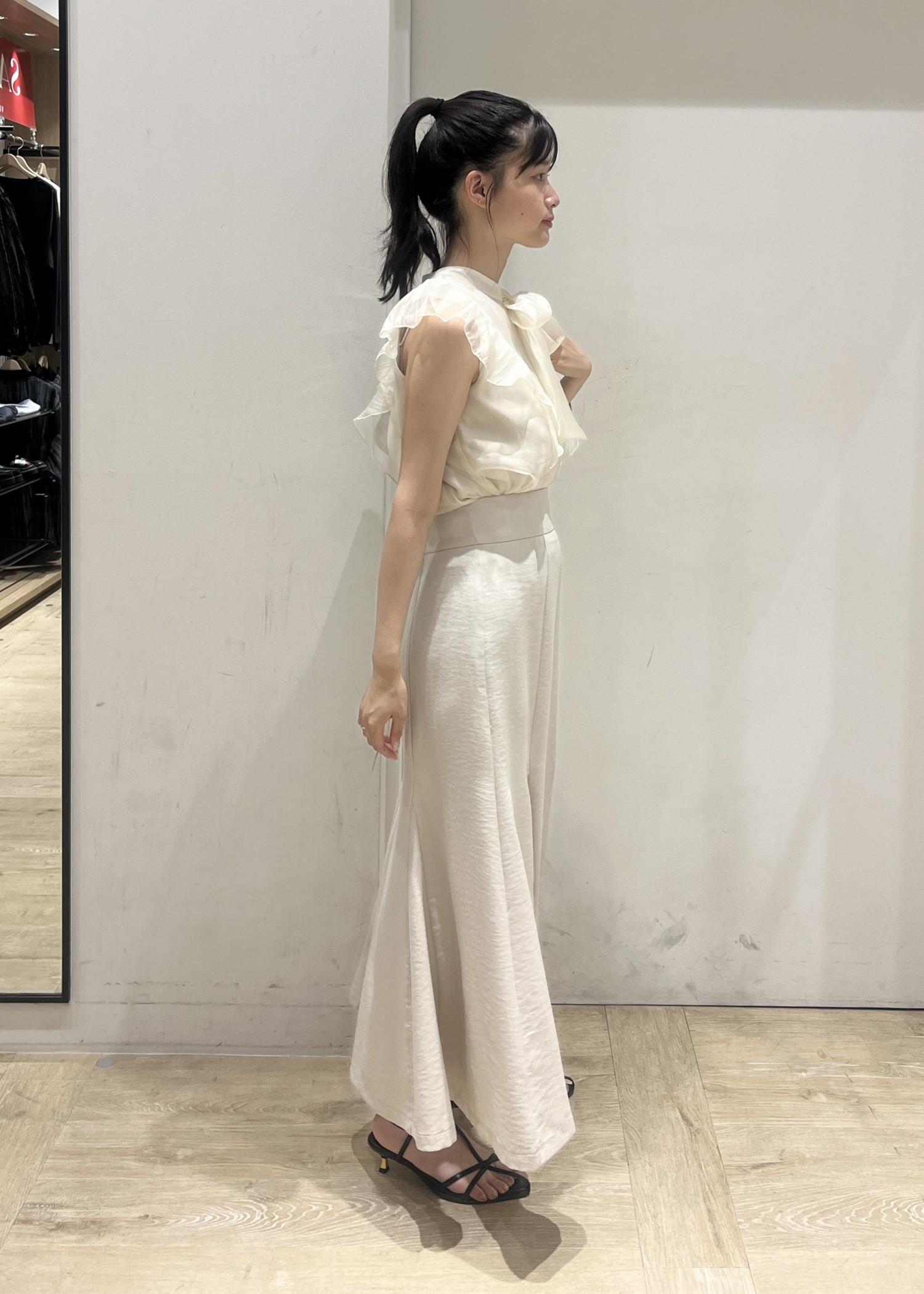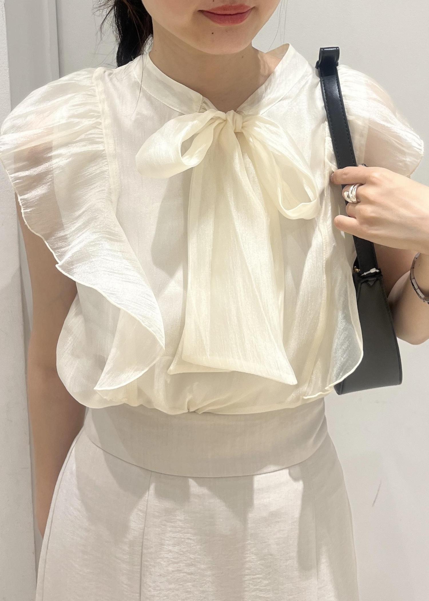 VIS【店頭人気】主役級!華やぎシアーシャイニーボウタイフリルブラウス【前後2WAY】【洗える】キナリ / F¥4,391レビュー身長164cmで腰にかかるくらいの丈感。