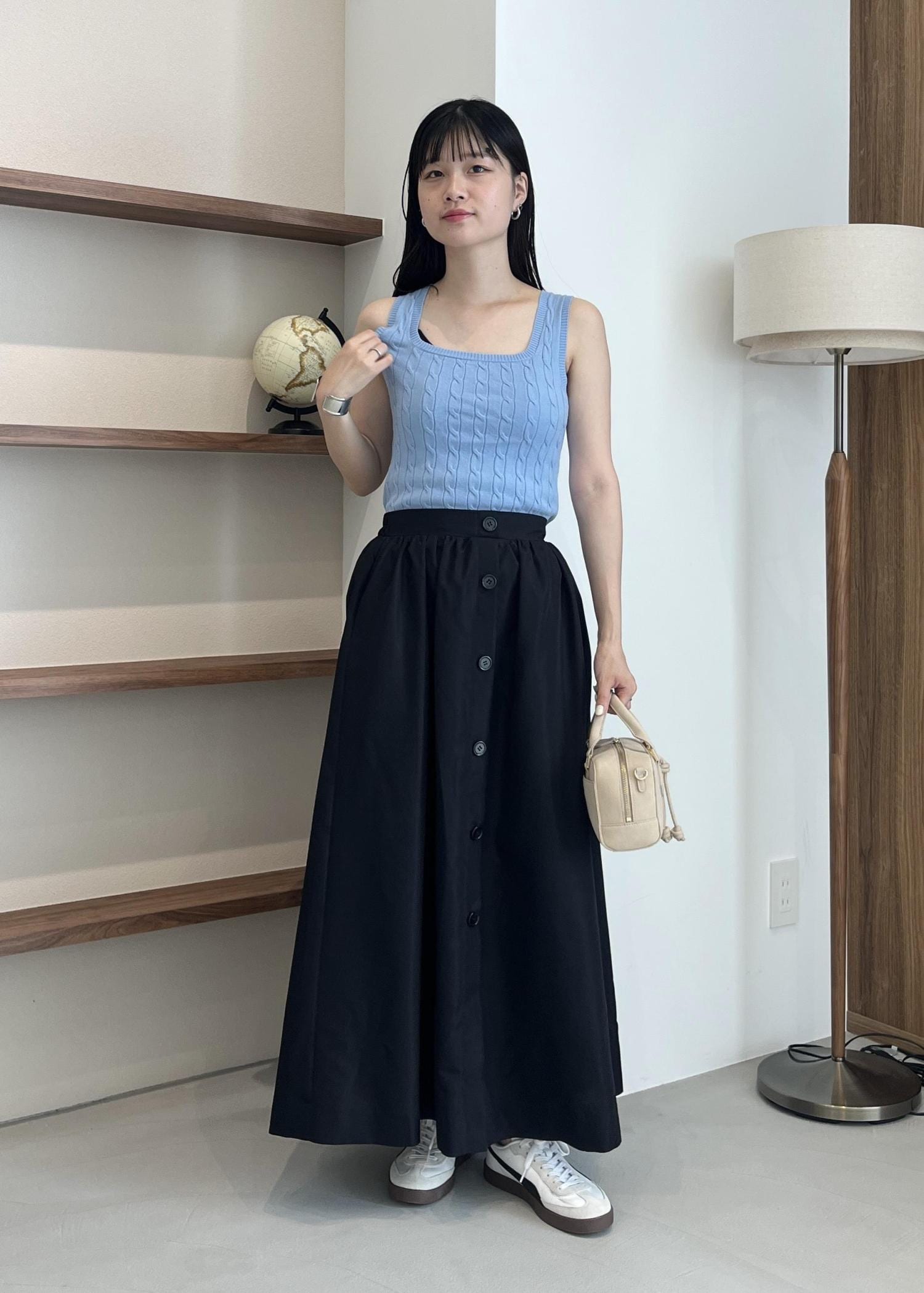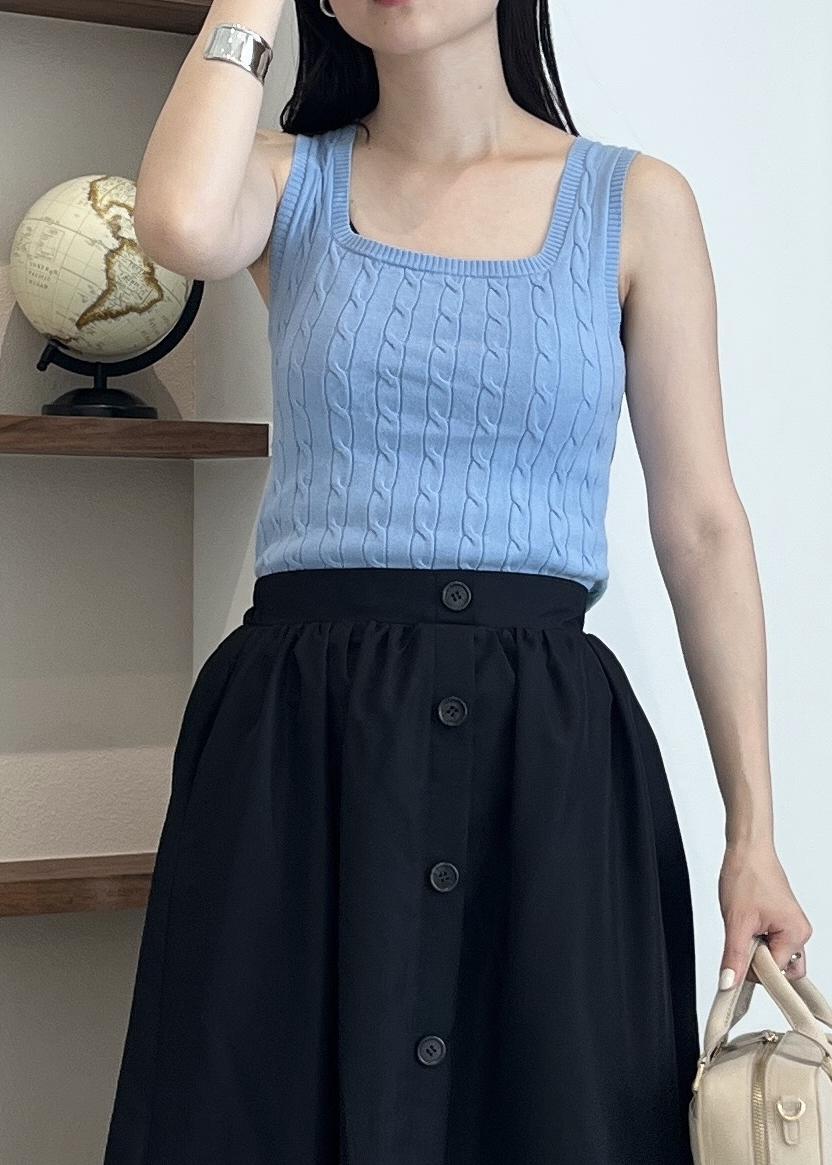 アウトレットVIS【前後2WAY】ケーブルニットタンクトップサックス / F¥1,756レビュー身長164cmで腰にかかるくらいの丈感。