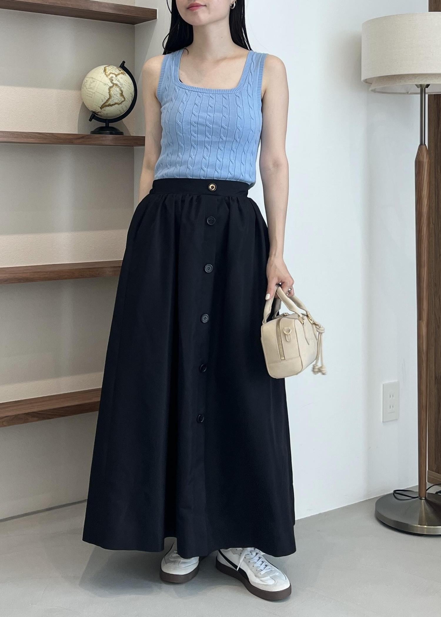 アウトレットVIS【WEB限定】フロントボタンフレアスカートブラック / F¥2,636レビュー身長164cmで足首見えるくらいの丈感。
