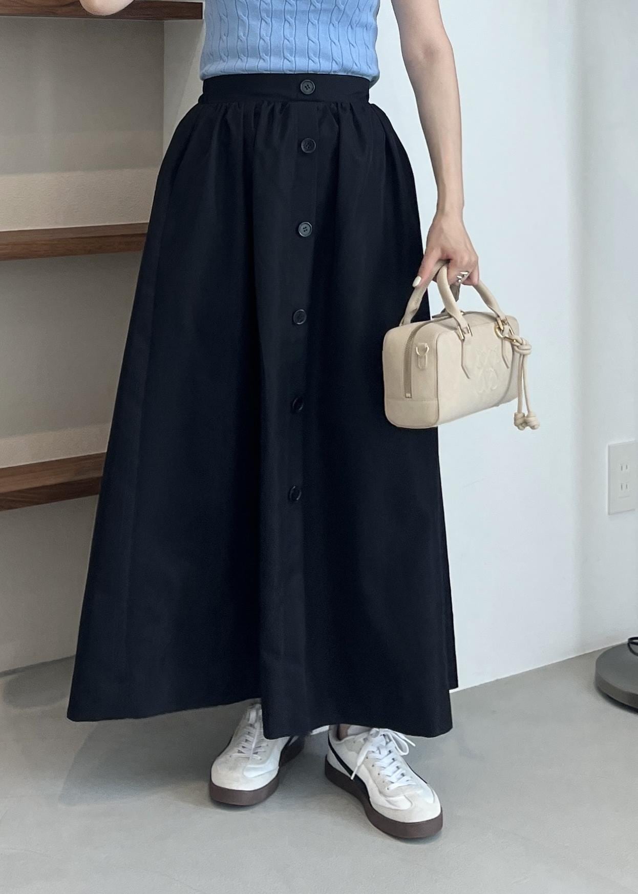 フロントボタンが付いていることで縦ラインも強調されるので脚長効果も! -