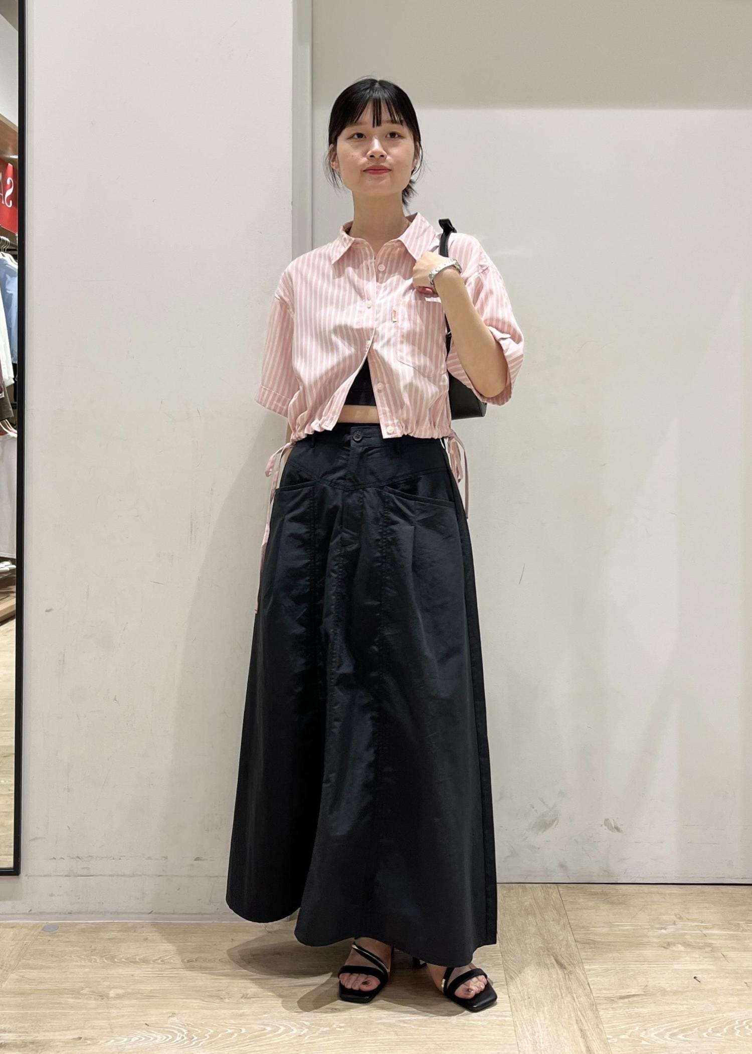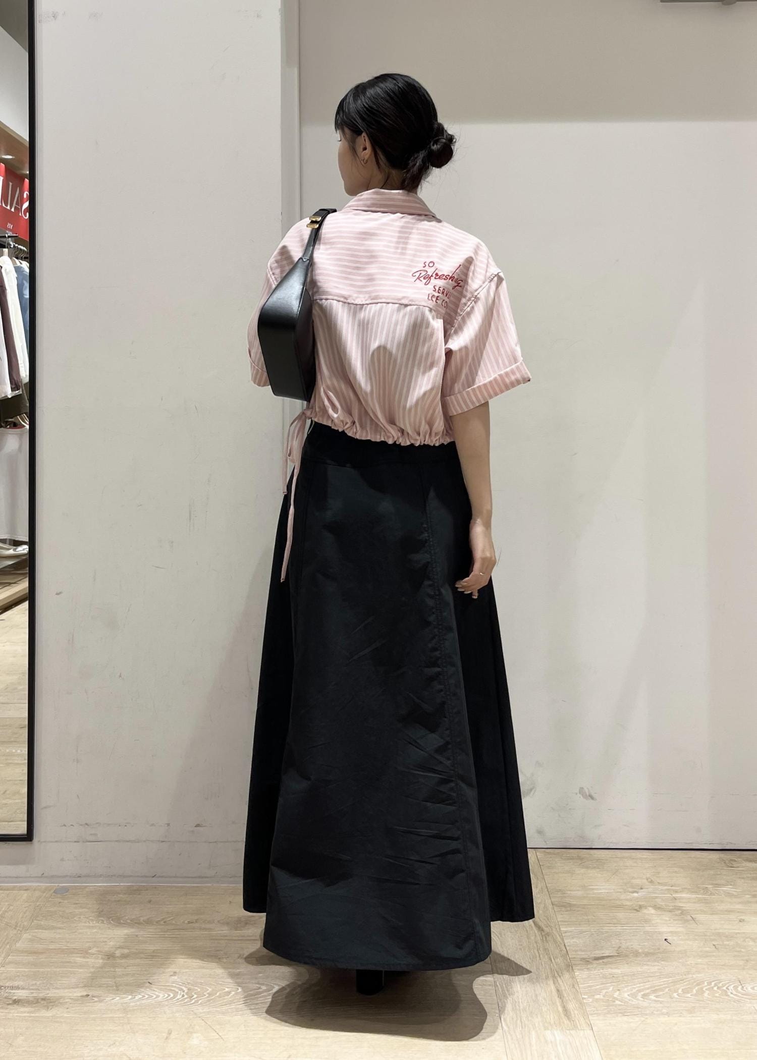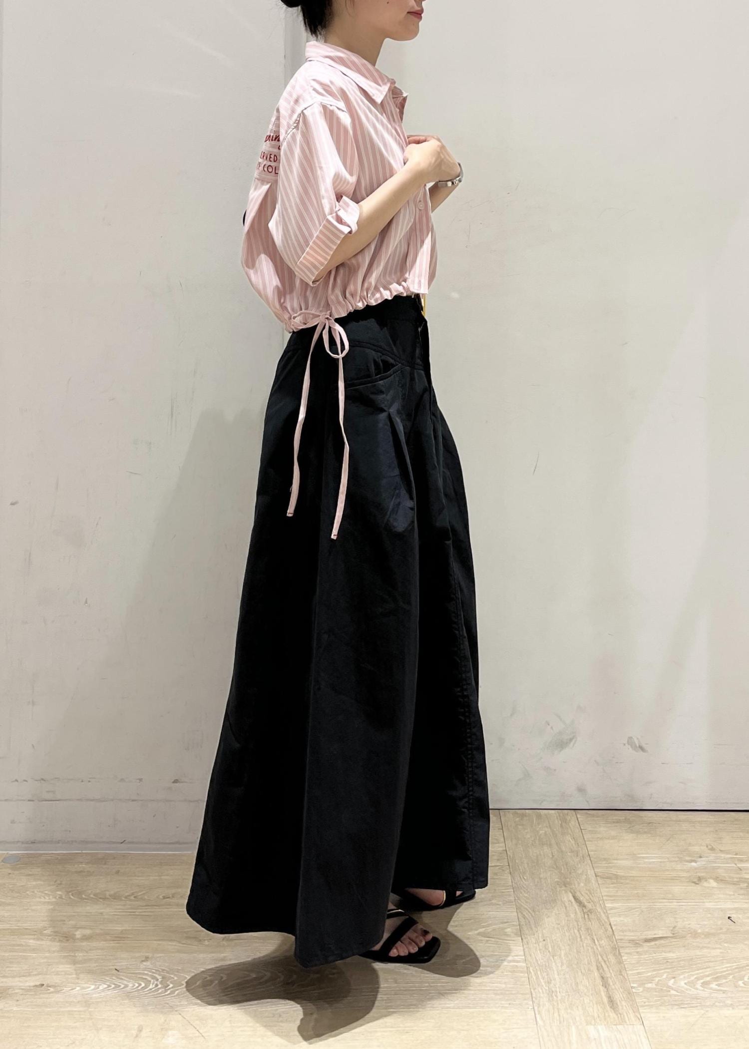 短めの丈感なのでスッキリとしたシルエットで着られます◎
