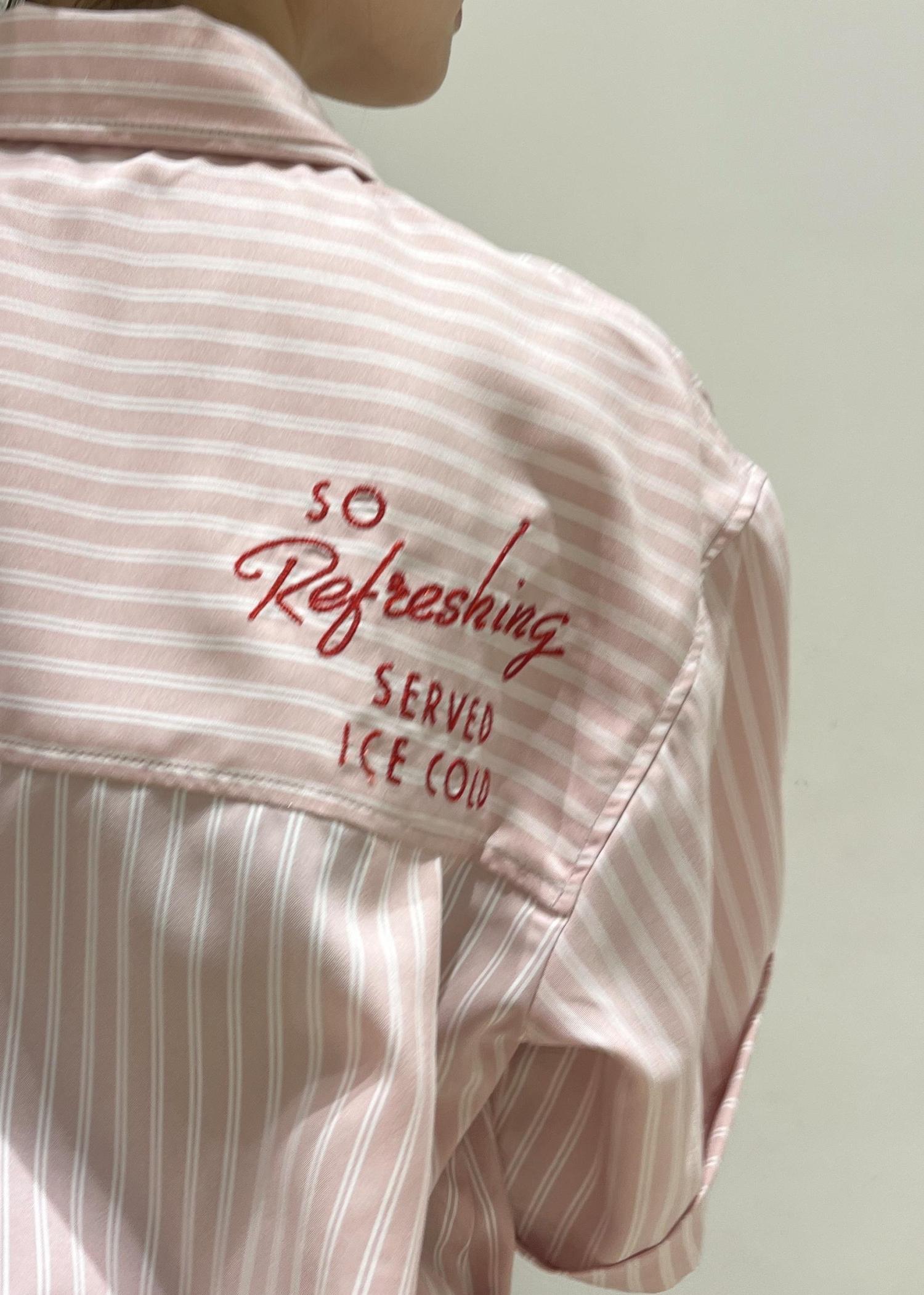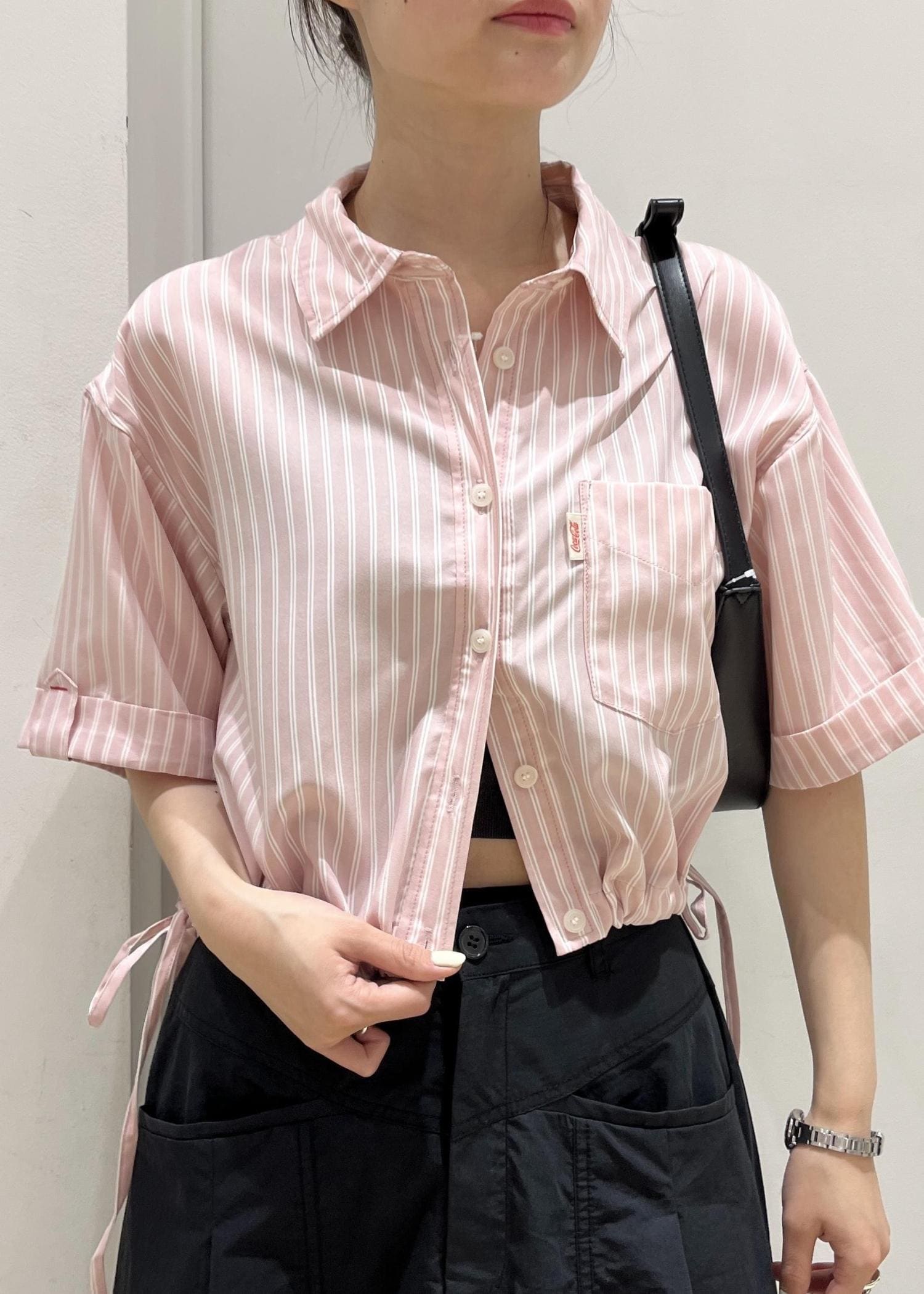 アウトレットVIS【Coca-Cola】VIS別注バックエンブロイダリークロップドシャツピンク系 / F¥2,310レビュー身長164cmで裾を絞らずに着ると腰にかかるくらいの丈感。