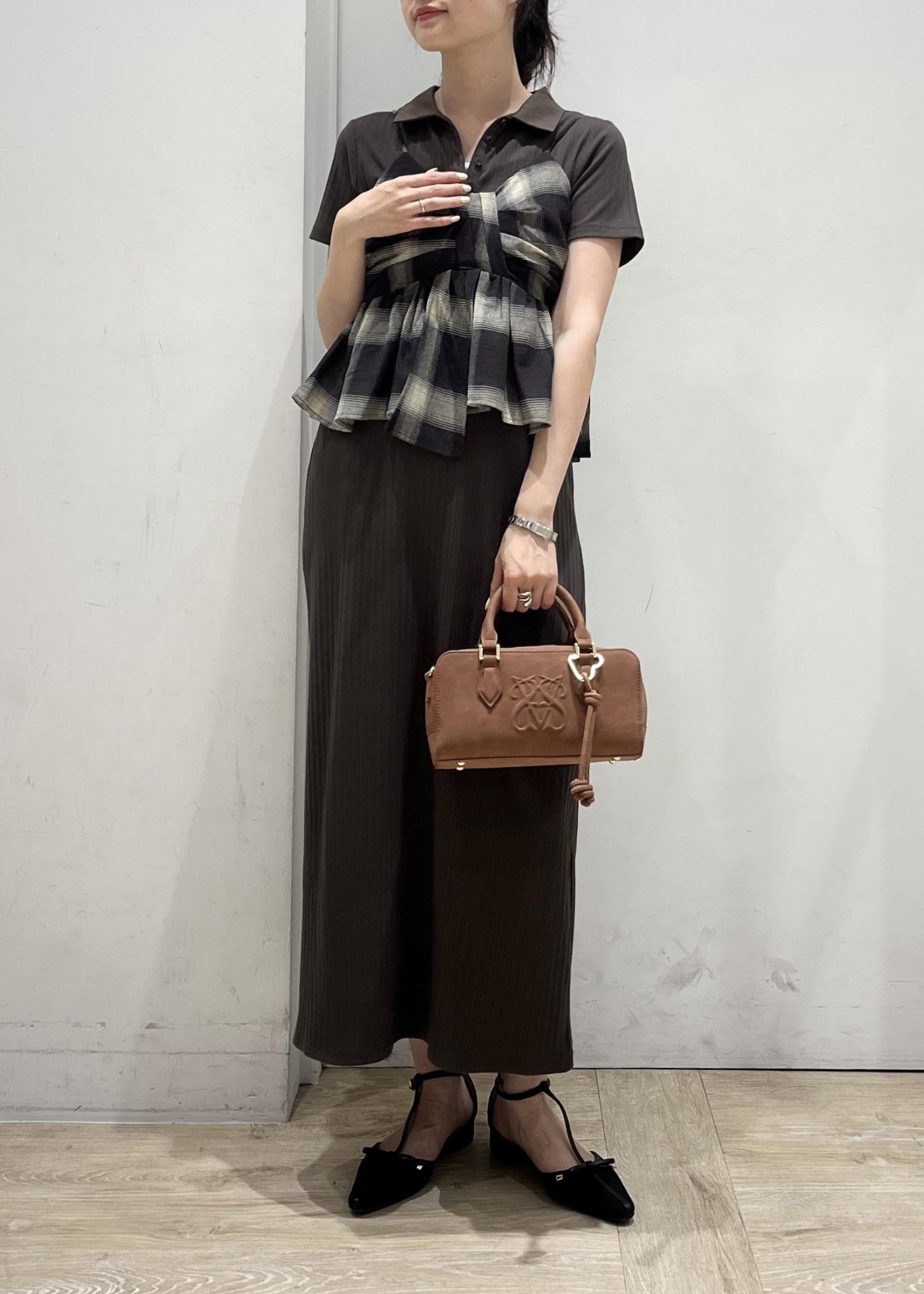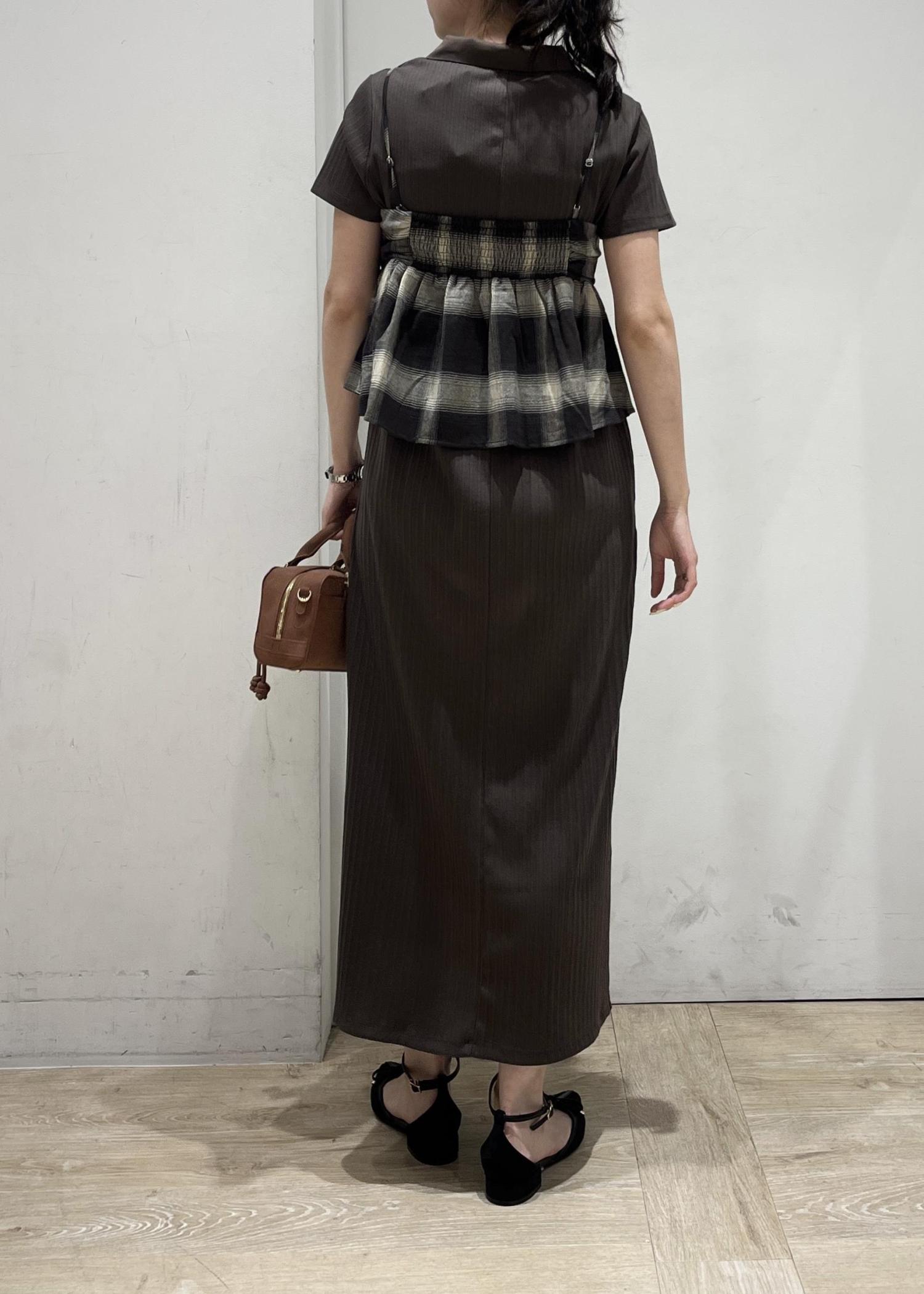 アウトレットVISポロ衿ランダムリブワンピースダークブラウン / F¥5,271レビュー身長164cmで足首がしっかり見えるくらいの丈感。