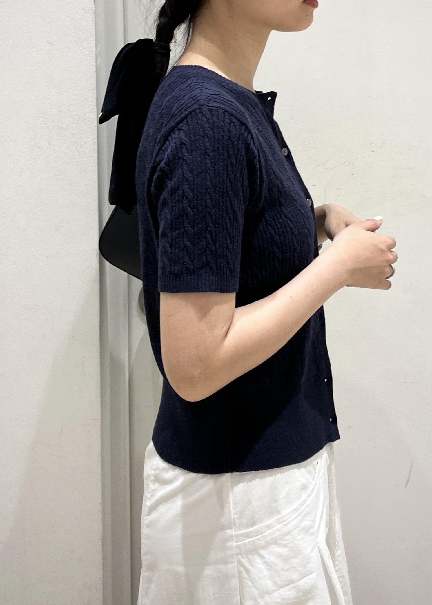 VIS【POLO BCS】VIS別注ハーフスリーブミニケーブルカーディガンネイビー / F¥6,600レビューコンパクトめなサイズ感ですっきりと着られます。