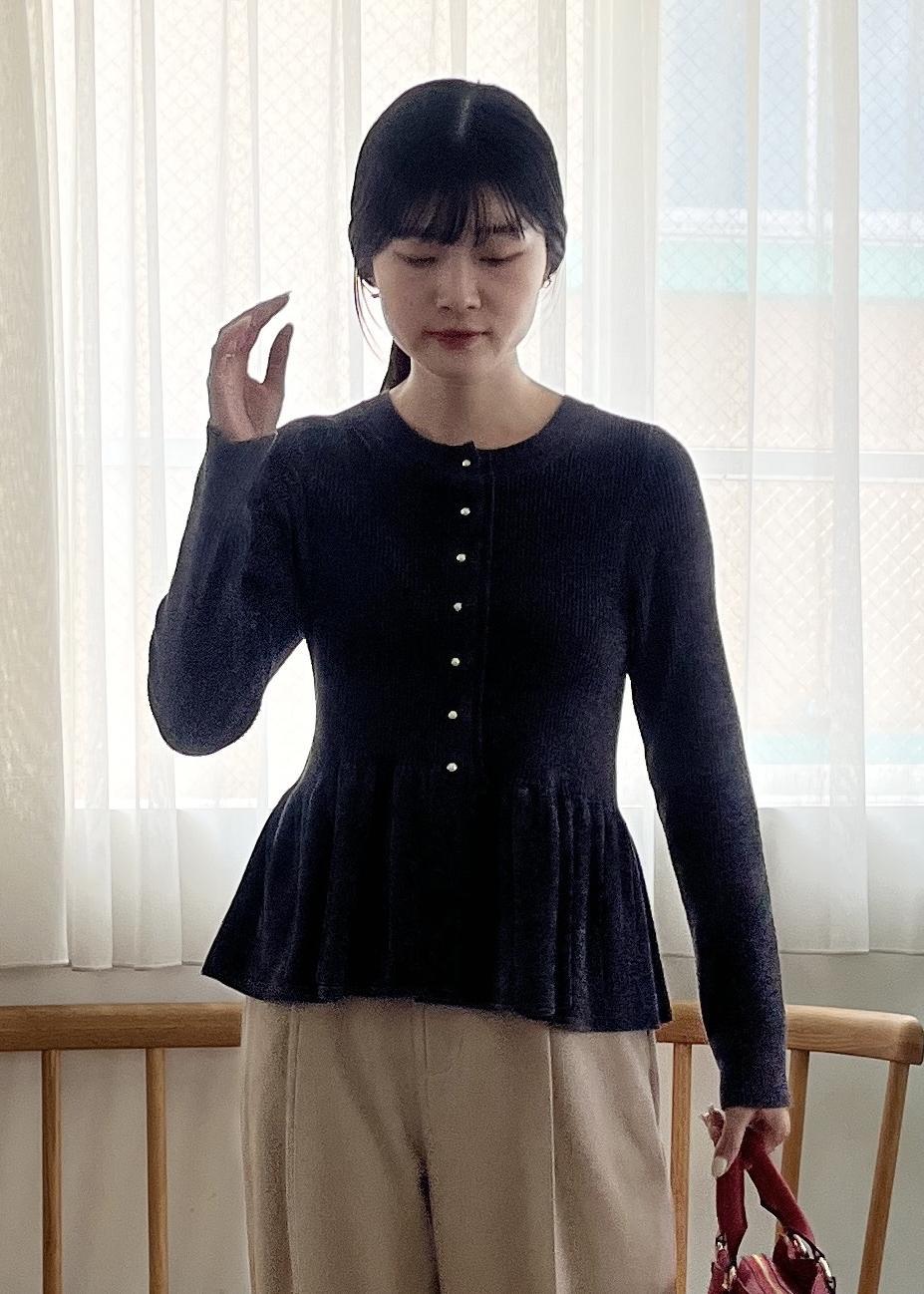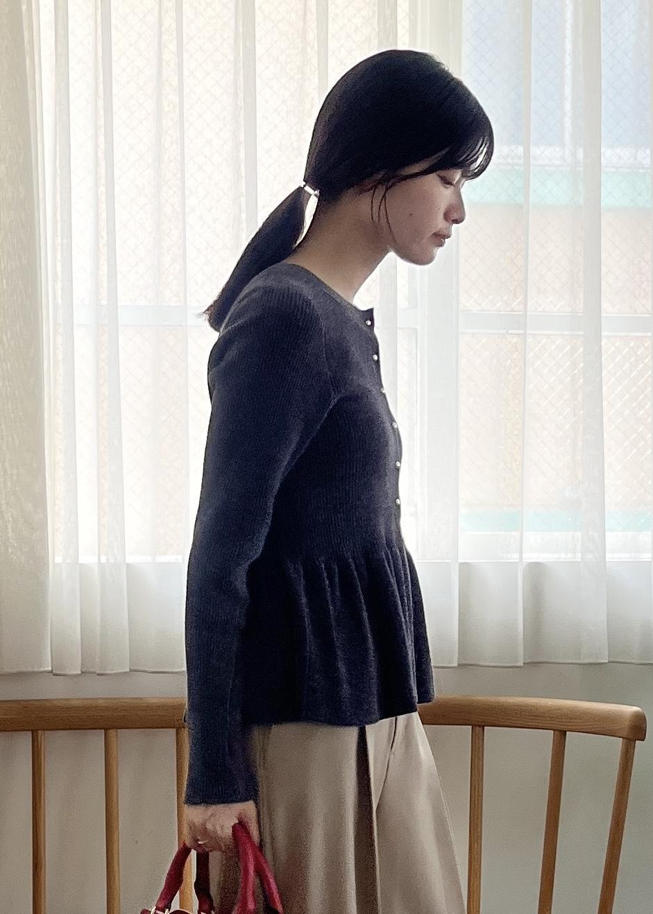 VISペプラム切替モールニットカーディガン/イージーケアチャコール / F¥6,589レビュー身長164cmで腰隠れるくらいの丈感。