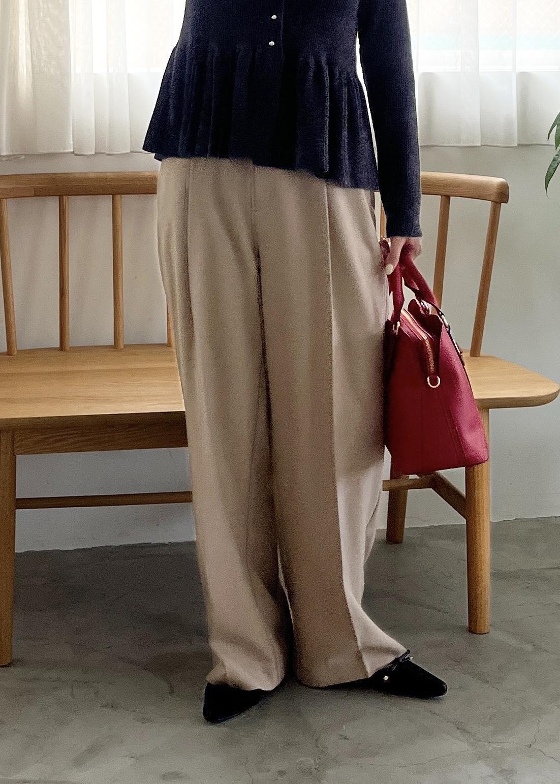 VIS美easyウーリッシュワンタックワイドパンツ【セットアップ対応/洗える】ベージュ / M¥5,929レビュー身長164cmでくるぶし隠れるくらいの丈感。