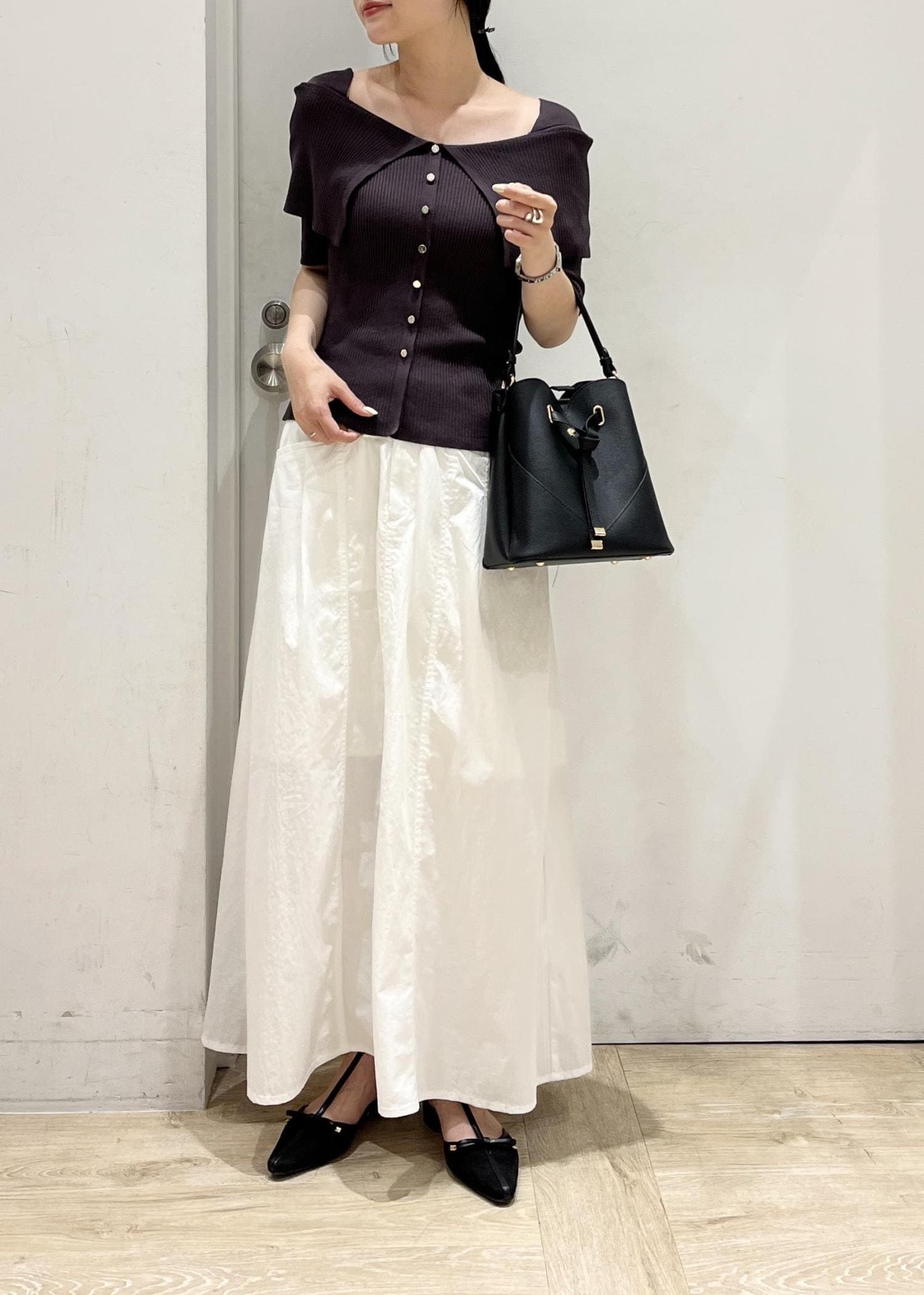 アウトレットVISウエスト切替デザインフレアスカートオフホワイト / F¥3,295レビュー身長164cmで足首隠れるくらいの丈感。
