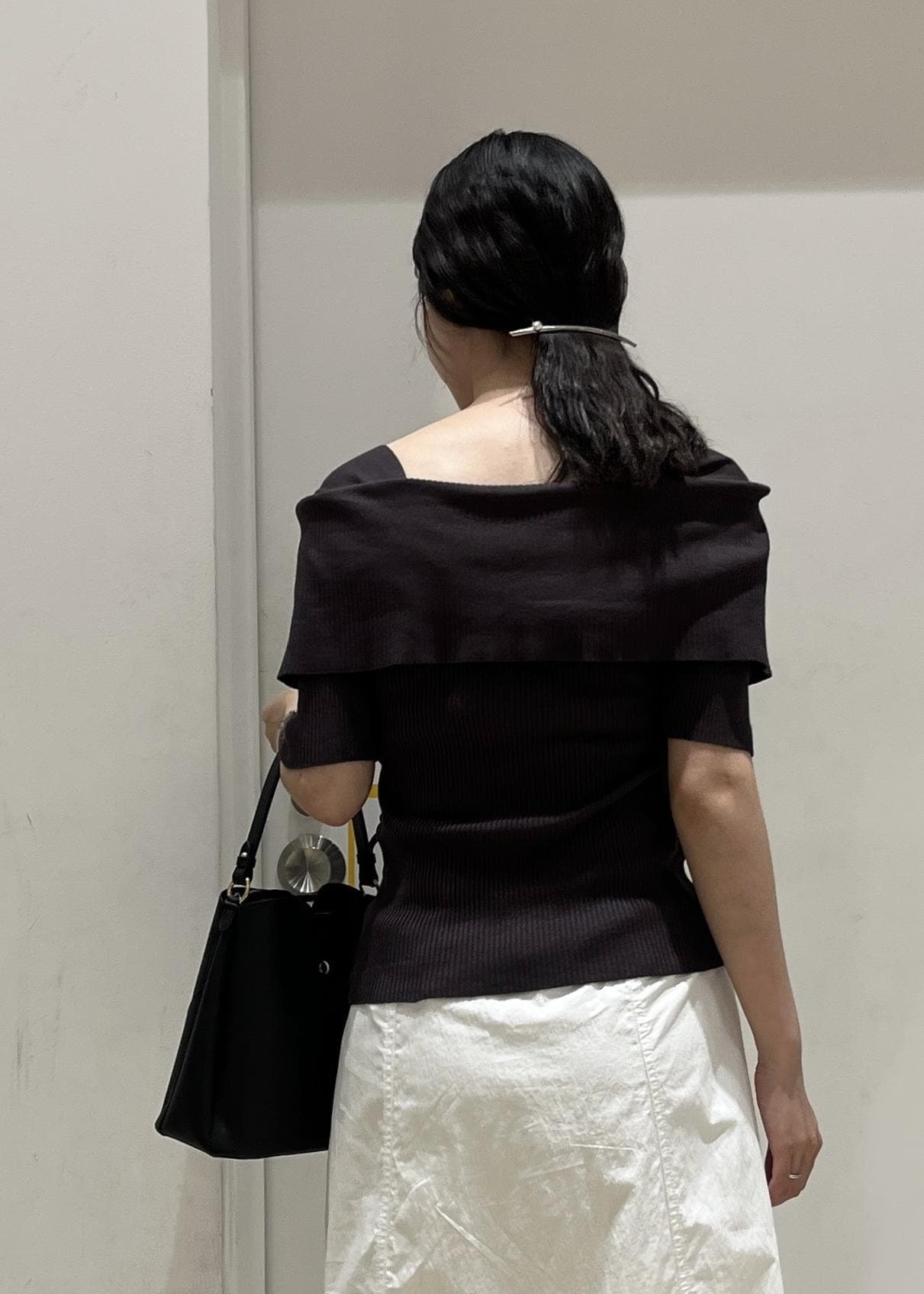 アウトレットVISビックカラーオフショルハーフスリーブニットチャコール / F¥3,457レビュー身長164cmで腰にかかるくらいの丈感。