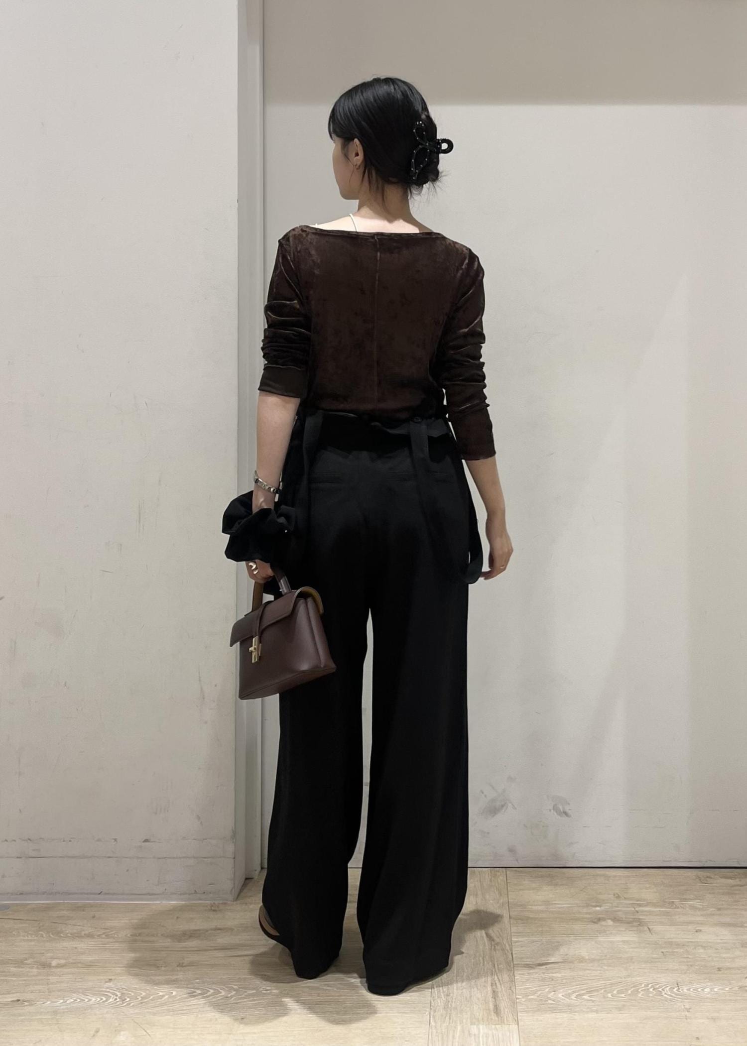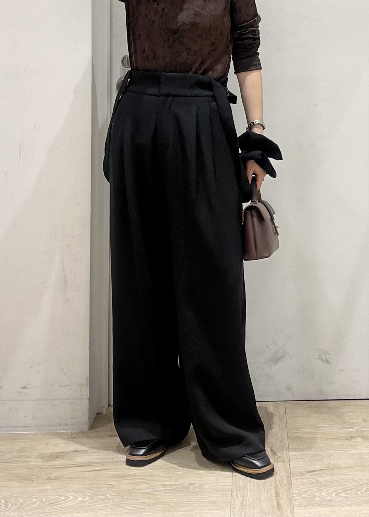 しっかりゆとりのあるワイドパンツでタックが入っているので腰回り隠してくれて◎