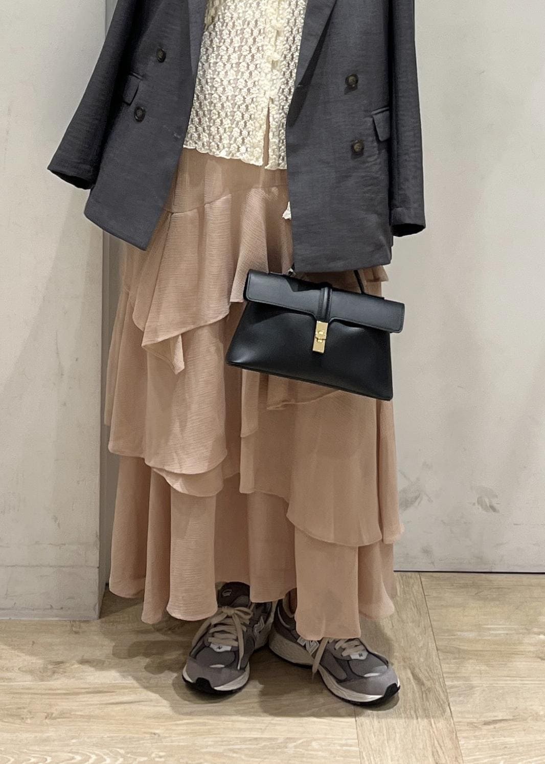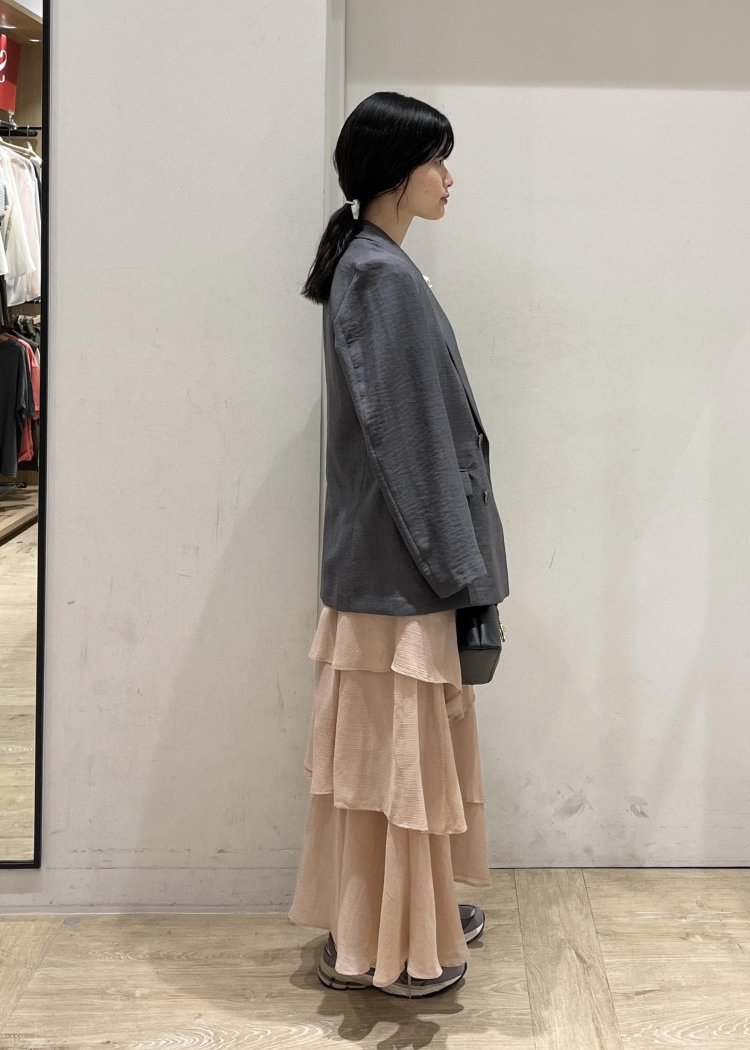 長め丈ですが、コンパクトめなサイズ感なのでボトムから出してきても可愛いです。