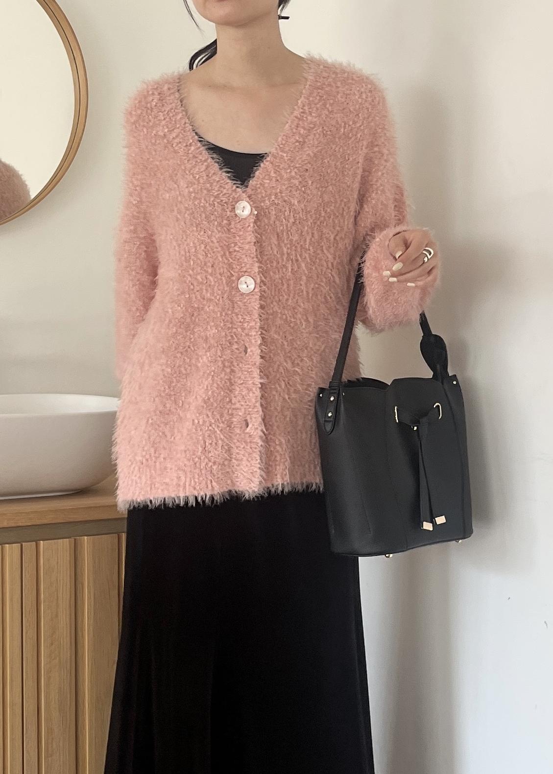 アウトレットVISポップコーンヤーンラメフェザーニットカーディガン/WEB限定FSサイズピンク / F¥3,295レビュー身長164cmでお尻隠れるくらいの長め丈。