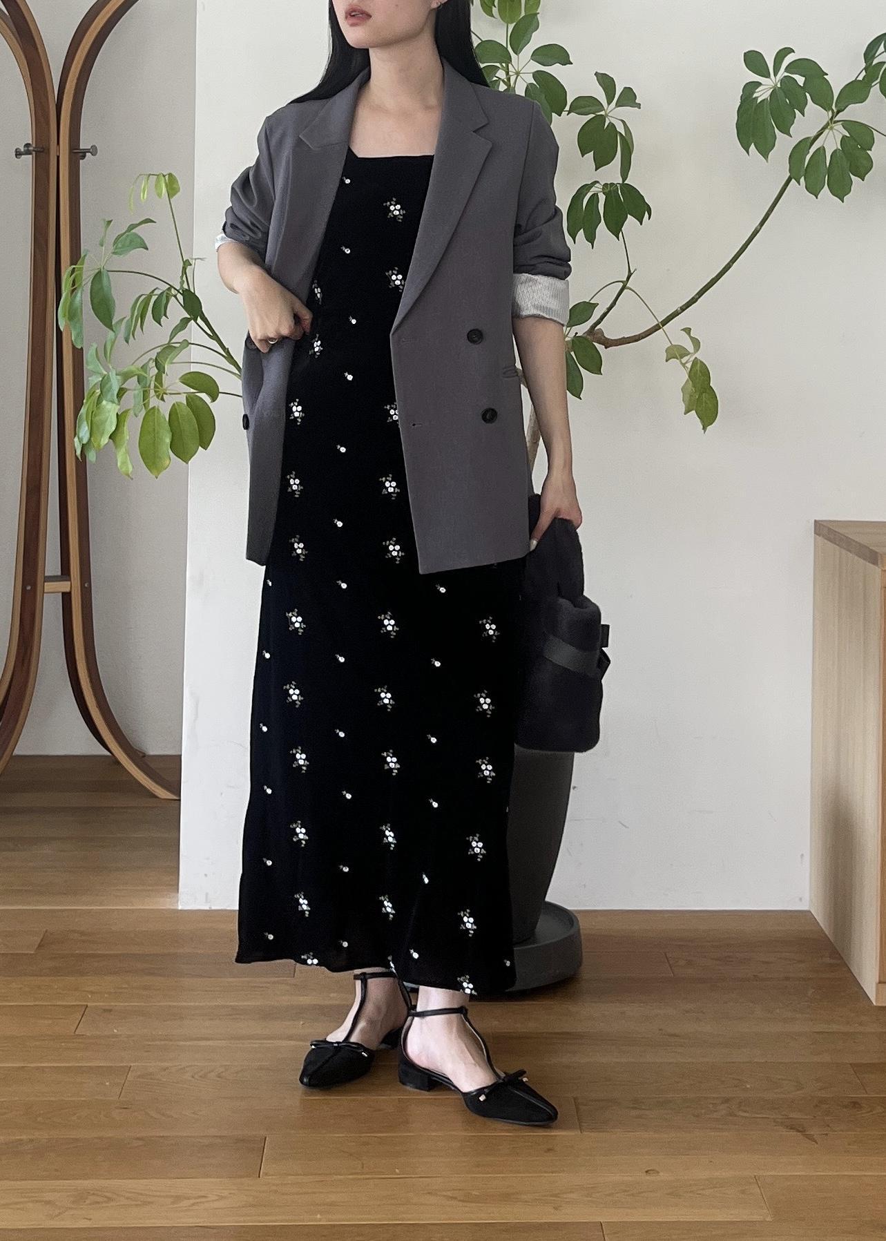 VIS刺繍アソートベロアキャミワンピース/2WAYブラック系 / F¥8,899レビュー身長164cmでくるぶし隠れるくらいの丈感。