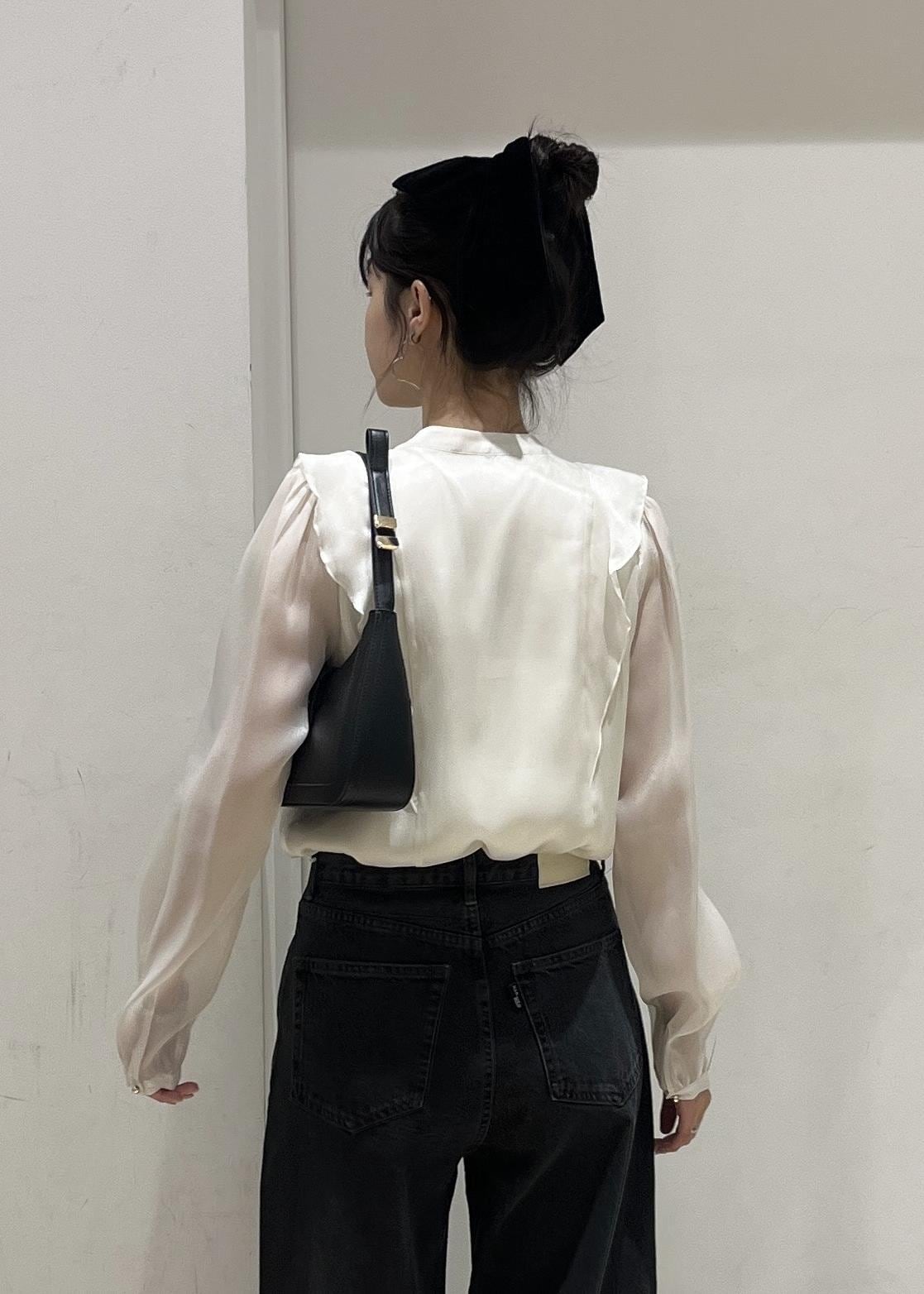 フリルが付いていますが、控えめな大きさでシアーなので可愛らしくてなりすぎずにも◎ -