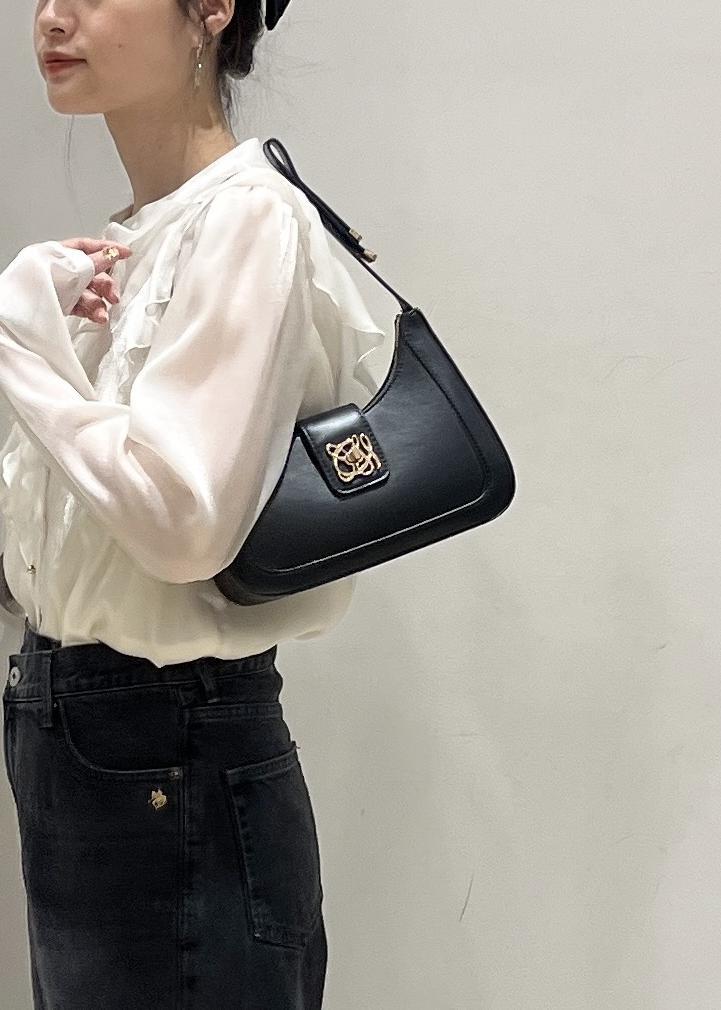 コンパクトめなサイズ感ですが、リップ、鏡、ミニ財布などは入ります。 -