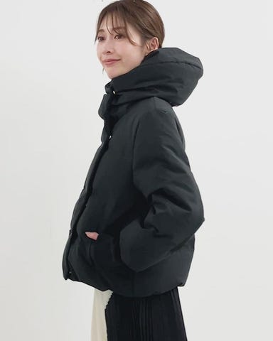 ・軽くて暖かいダウンとフェザーがしっかり詰まった、シームレスデザインのダウンコート。